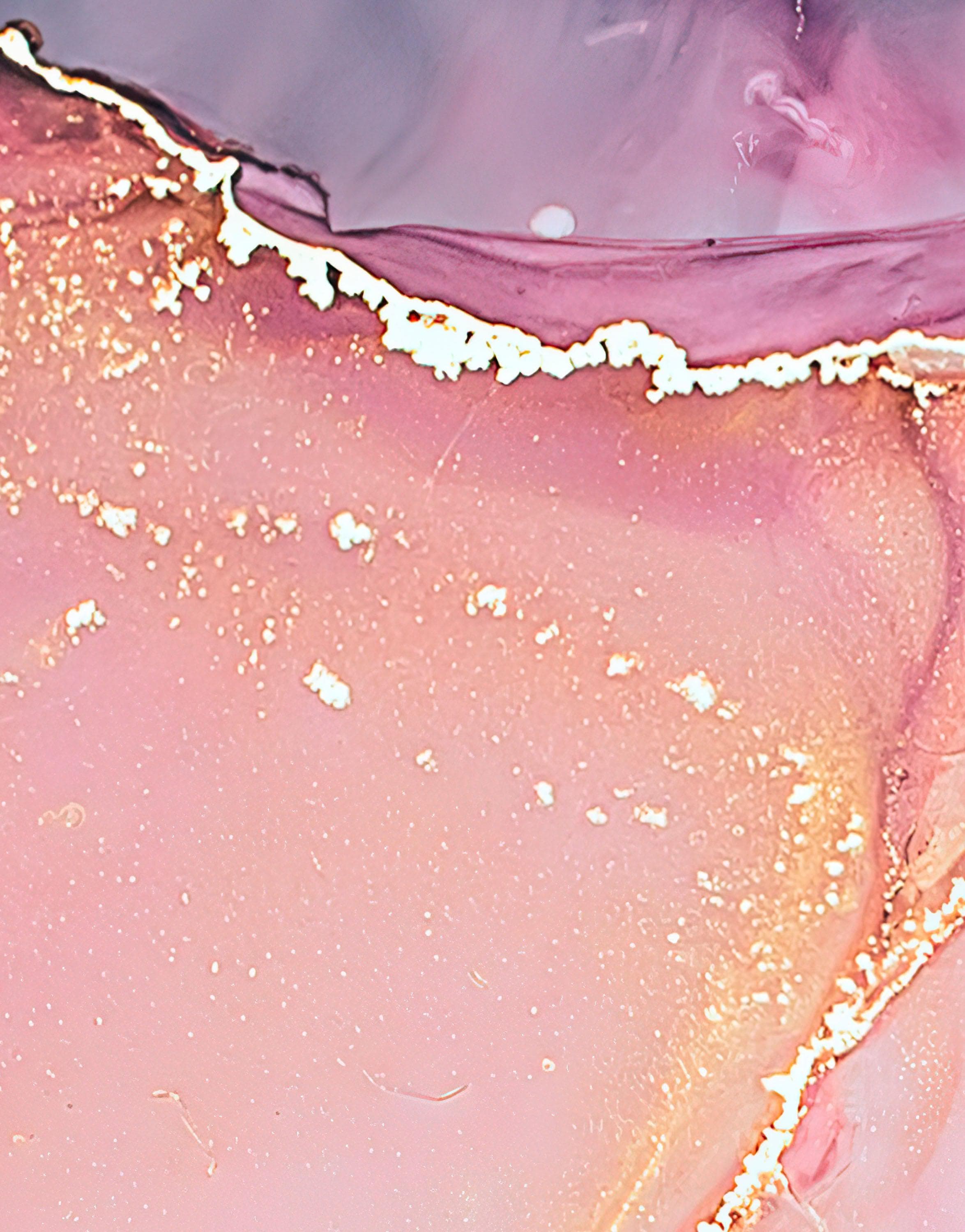 • Patrón abstracto de manchas de tinta (rayas de color rosa, azul y dorado).