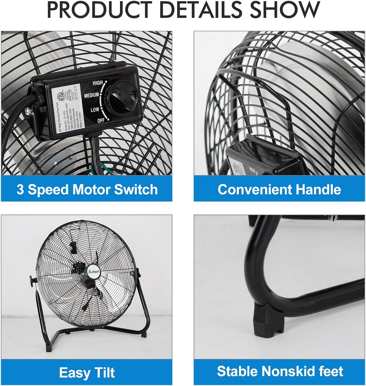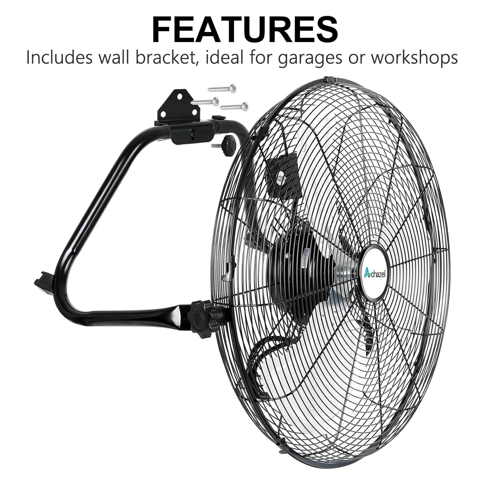 ACHAZEL 20" 3-Speed High Velocity Floor Fan, 4650 CFM, Heavy Duty Metal Industrial Shop Fan with Wall-Mount System, Ideal for Garage, Workshop & Commercial Use