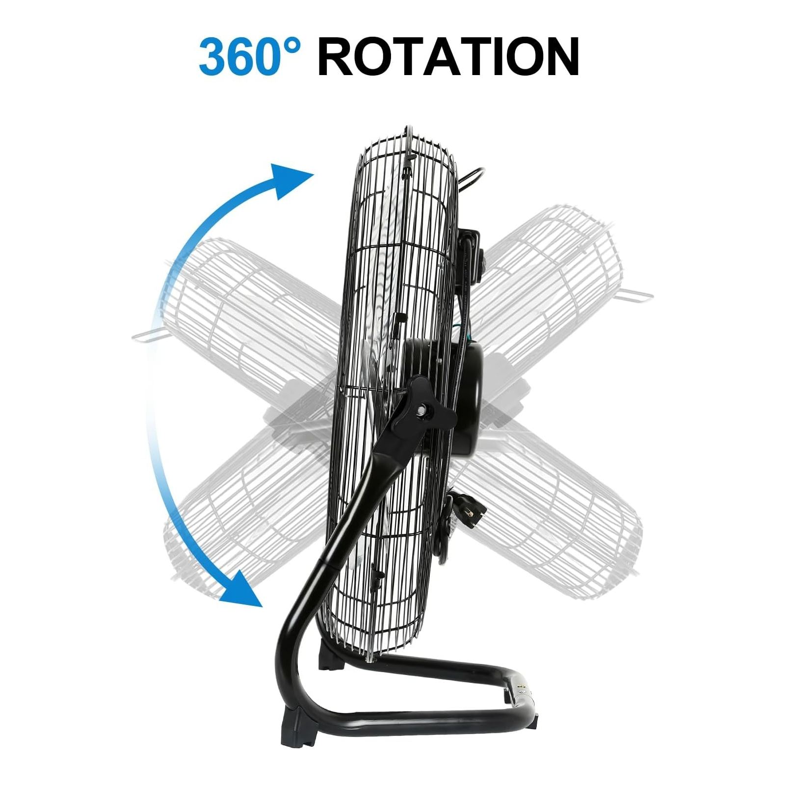 【Durable and Sturdy】: Constructed with rugged all-metal construction, aluminum fan blades, and a black powder-coated finish, this 20-inch floor fan is built to last. The tube base with rubber feet ensures stability, making it ideal for greenhouses, gyms, garages, and workshops.