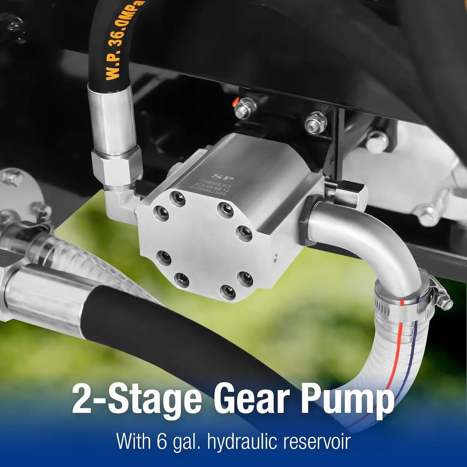 Con una capacidad de 6 galones, el sistema hidráulico opera a 11 GPM para evitar la entrada de contaminantes y prolongar su vida útil. Se incluyen aceites hidráulicos y de motor, así que estará listo para comenzar a partir de inmediato.