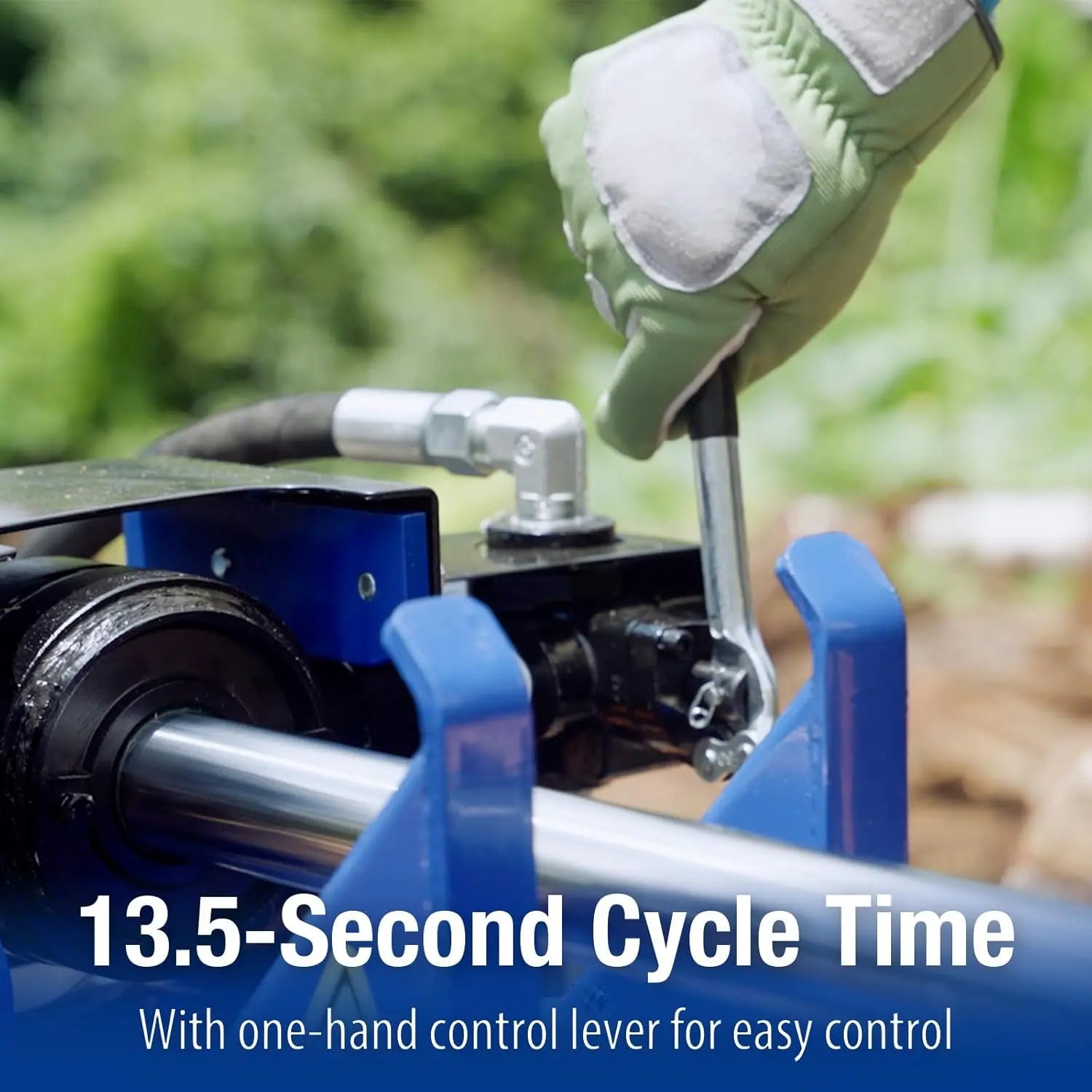Con una cuña de acero endurecido de 7 pulgadas, esta cortadora de madera hidráulica puede cortar troncos de hasta 24 pulgadas de largo con una velocidad de ciclo de solo 13,5 segundos, lo que garantiza que el trabajo se realice rápidamente.