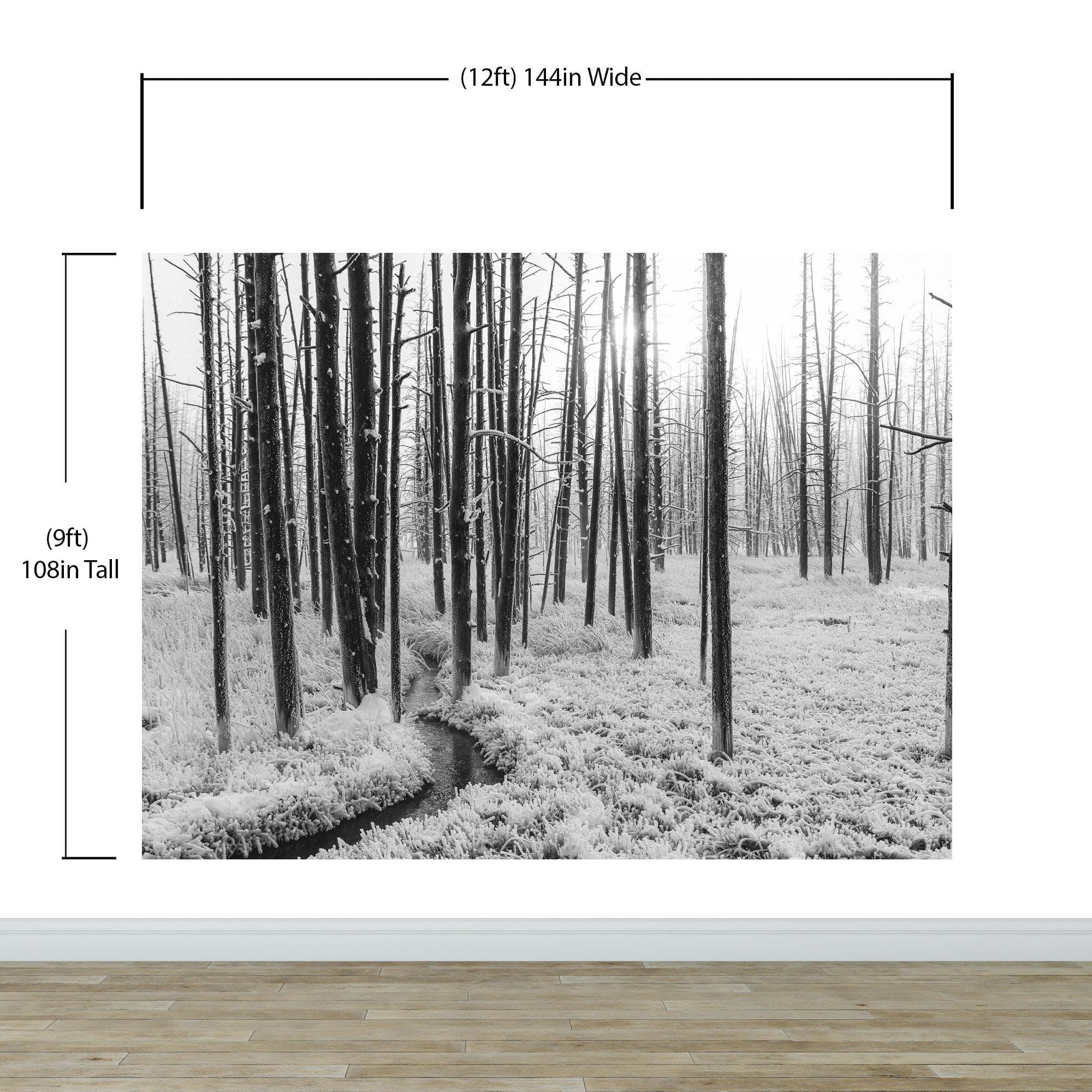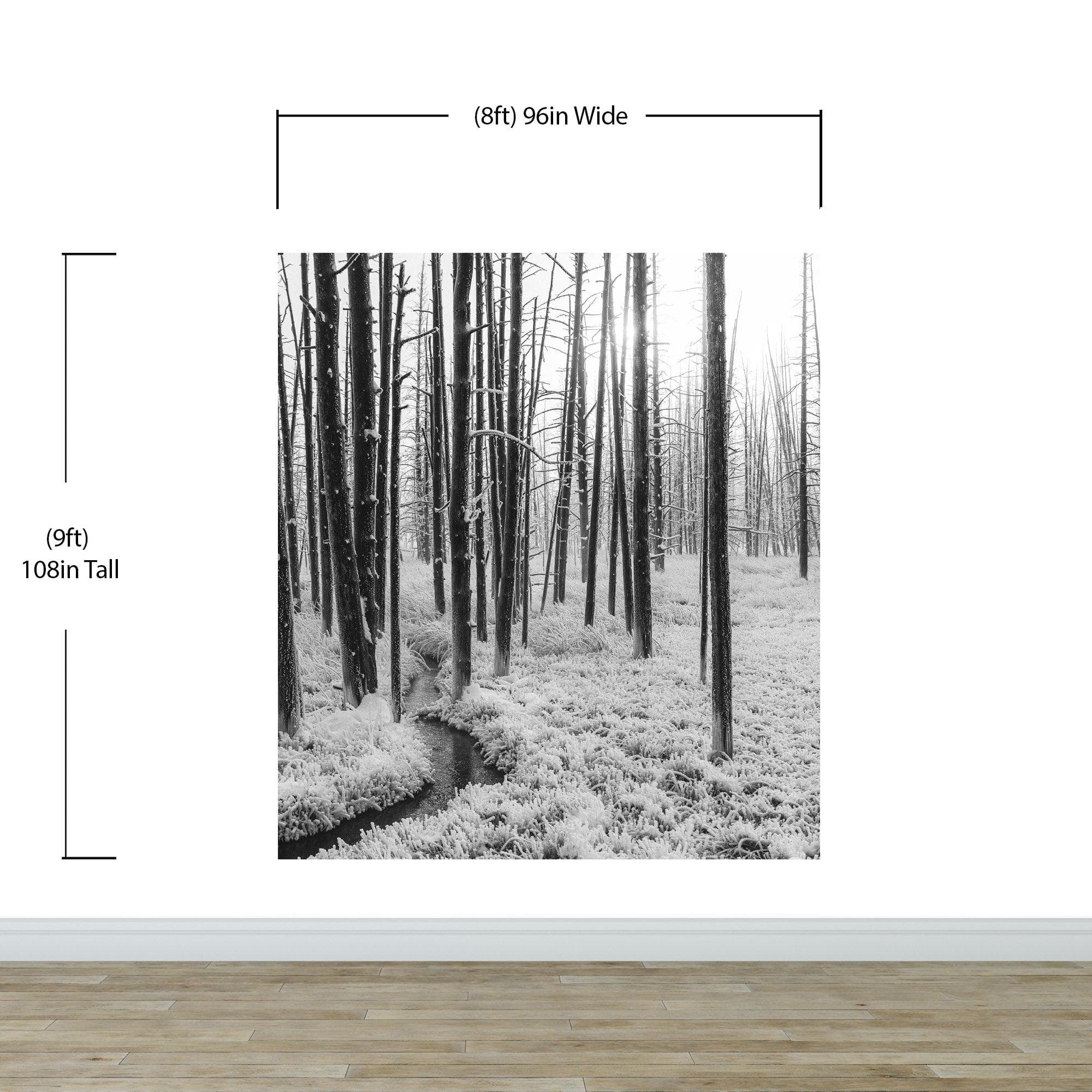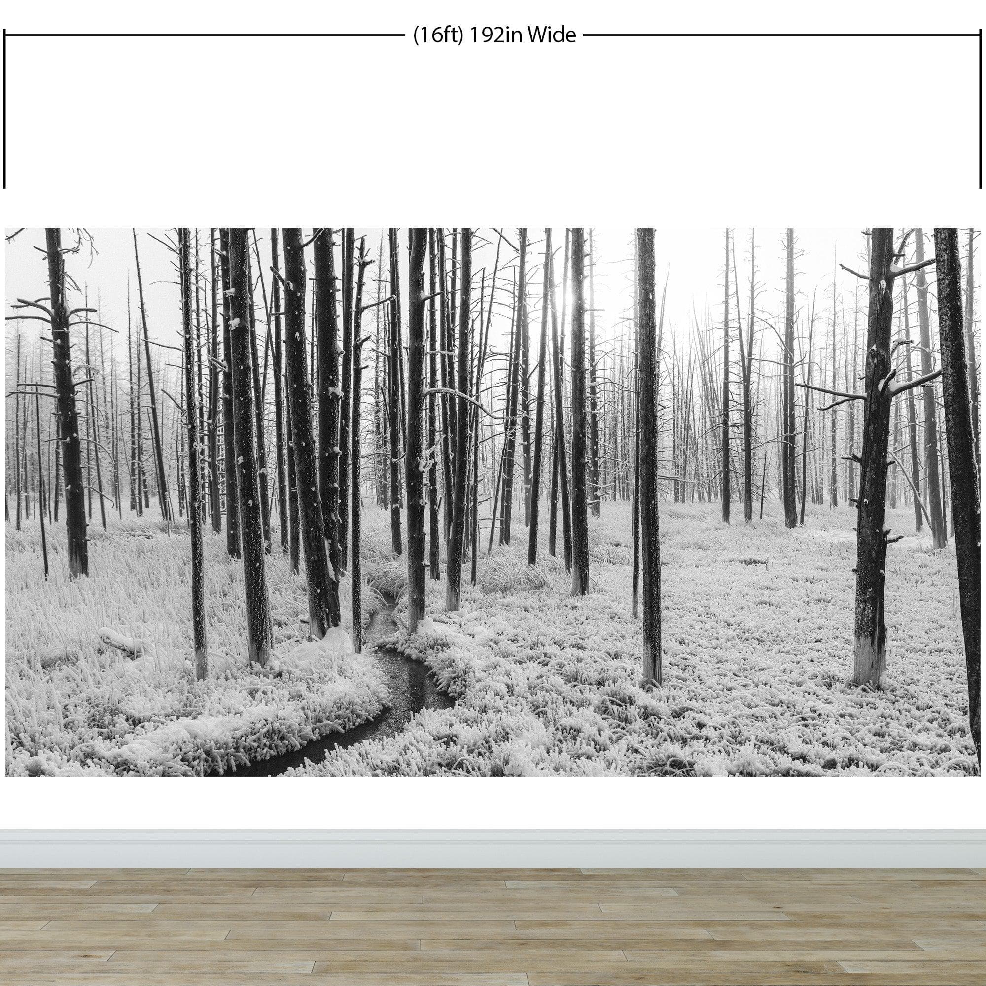 Mural de pared con paisaje forestal en blanco y negro. Papel pintado autoadhesivo. #6365