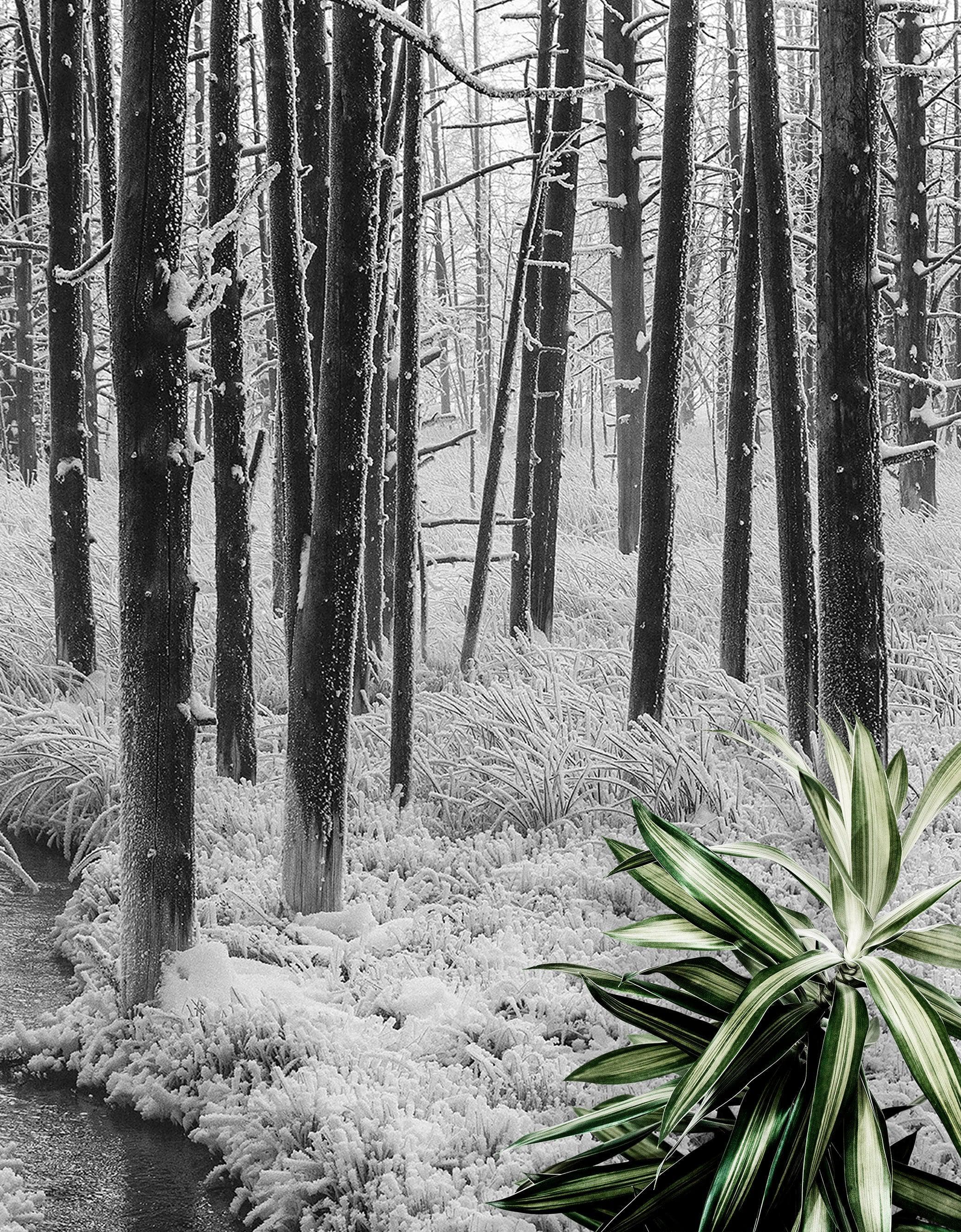 • Fotografía en blanco y negro del amanecer en Tangled Creek Falls.