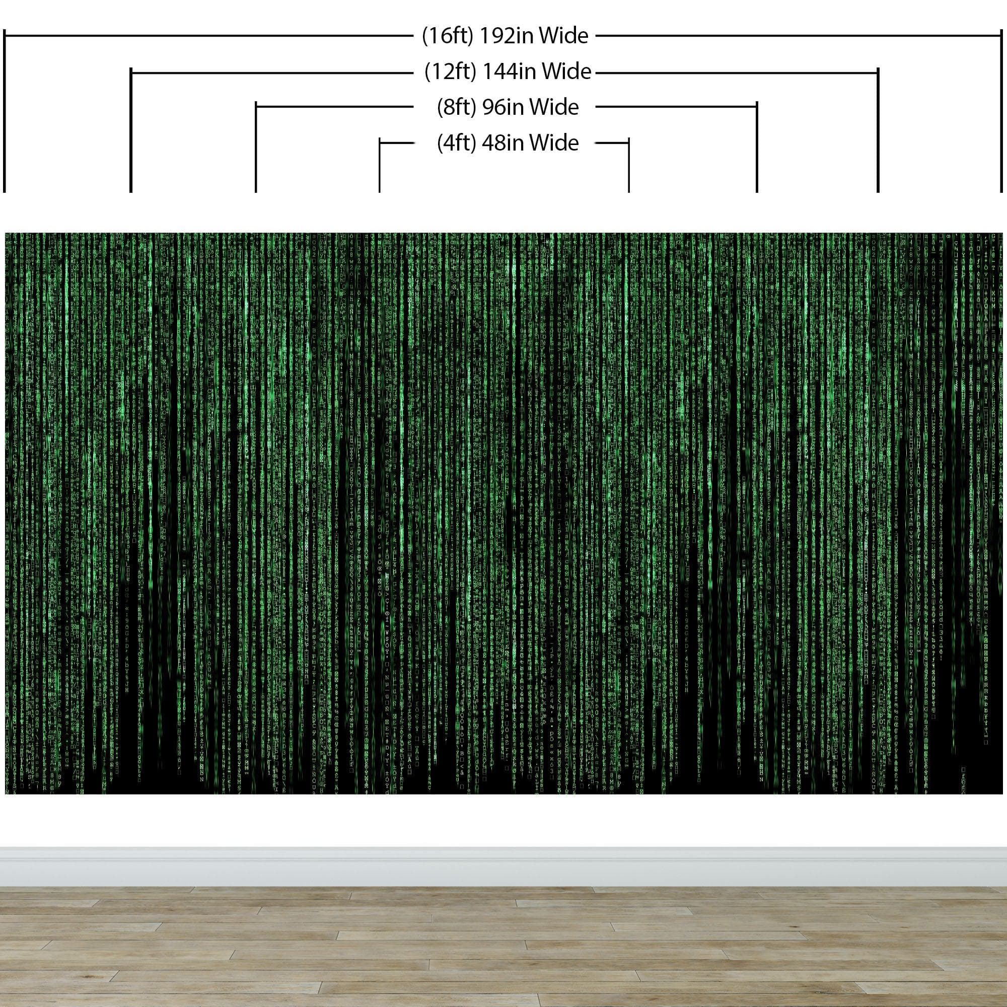 Mural de pared con líneas de código en estilo Matrix de computadora. Decoración de ciencia ficción. #6430