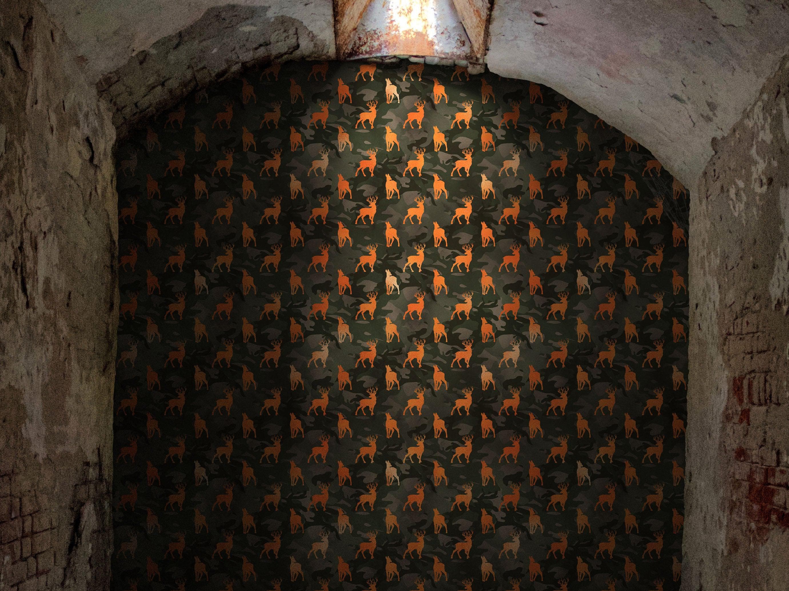 Mural de pared con silueta de ciervo y camuflaje. Decoración para el hogar con temática militar y cazadores. Papel tapiz autoadhesivo. N.º 6436