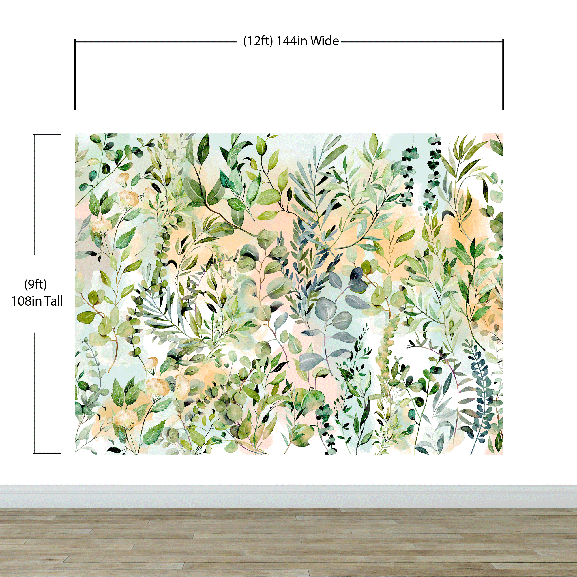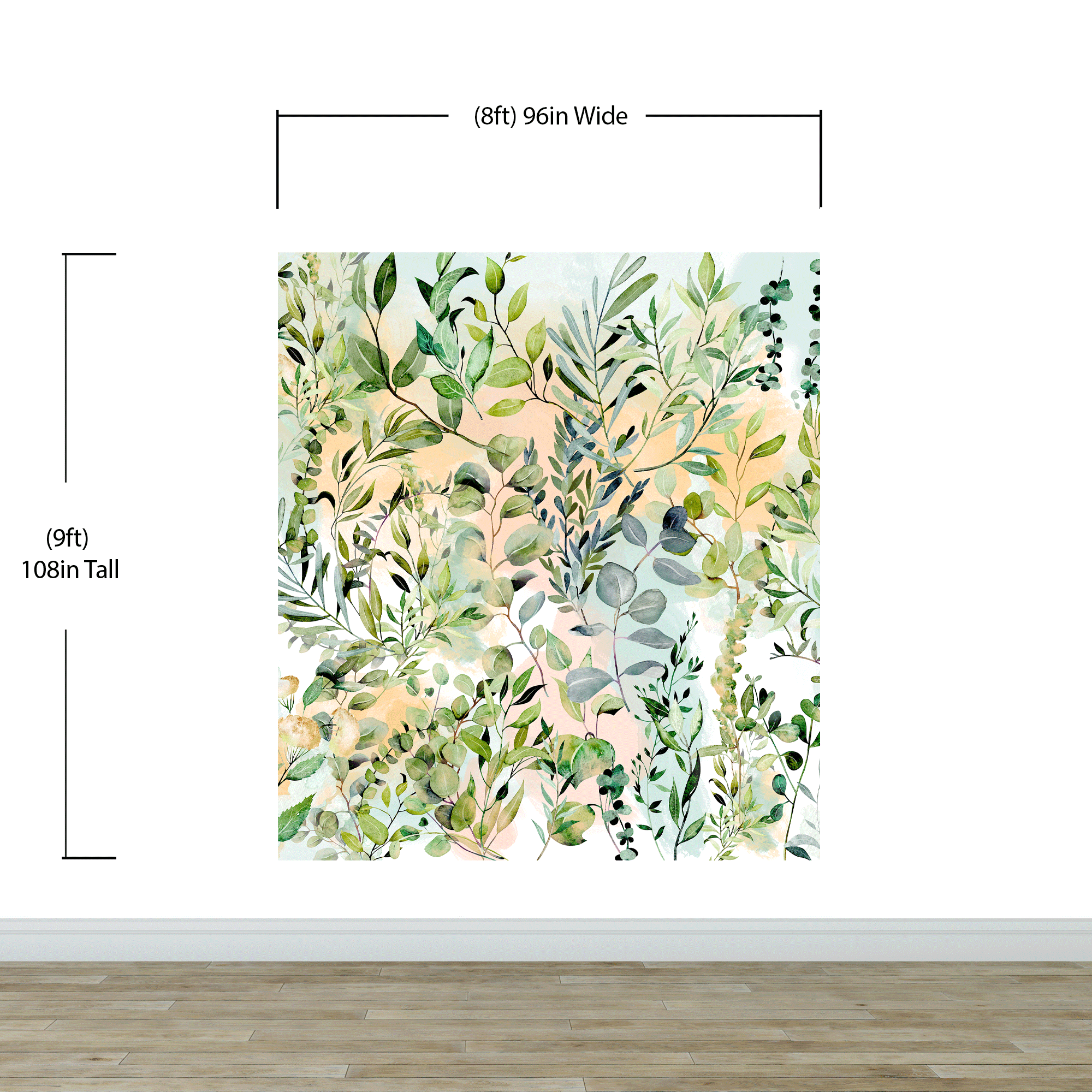 Papel pintado de eucalipto en acuarela de colores pastel. #6483