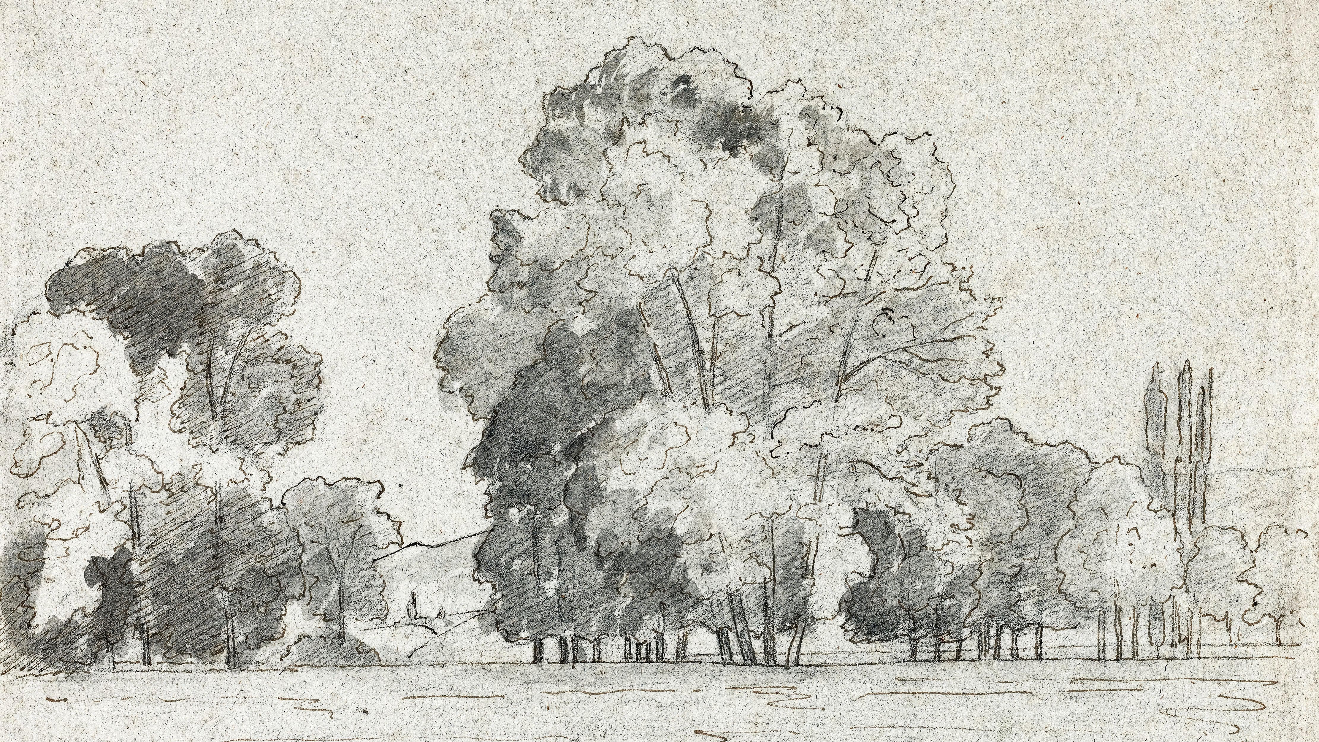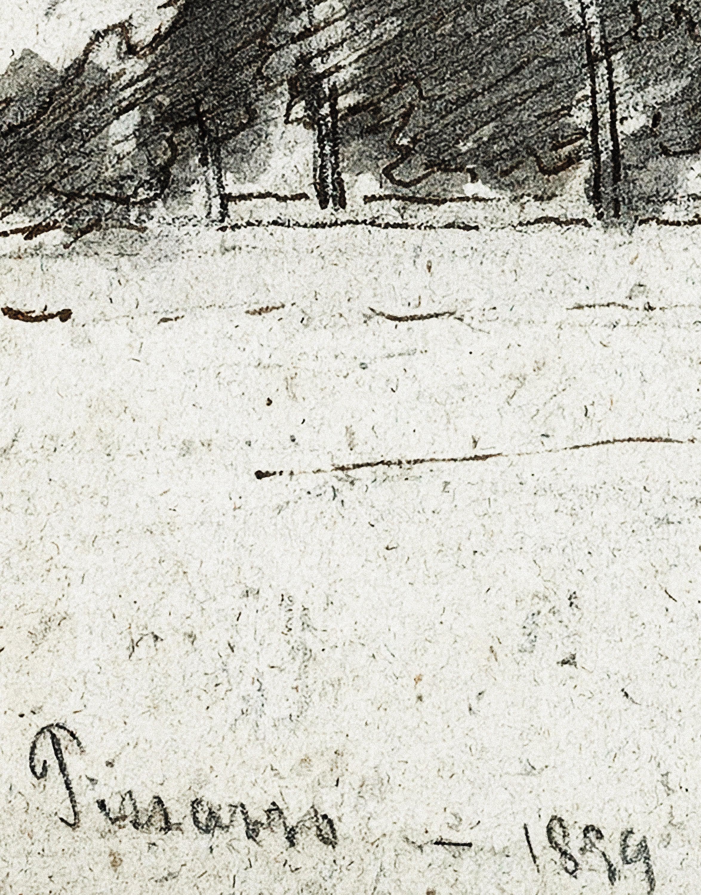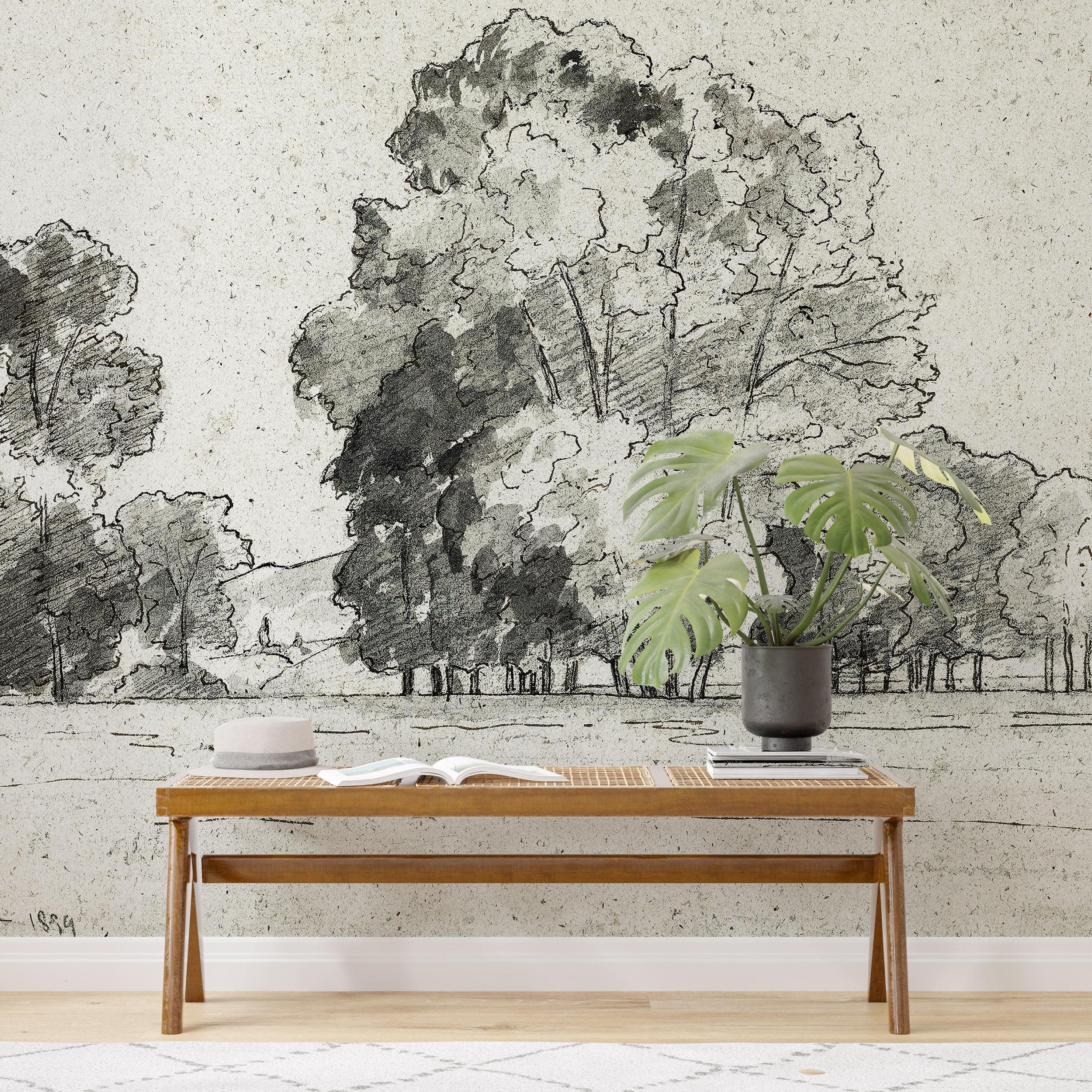 Mural autoadhesivo con árboles del bosque, dibujo de la arboleda de Camille Pissarro. #6344