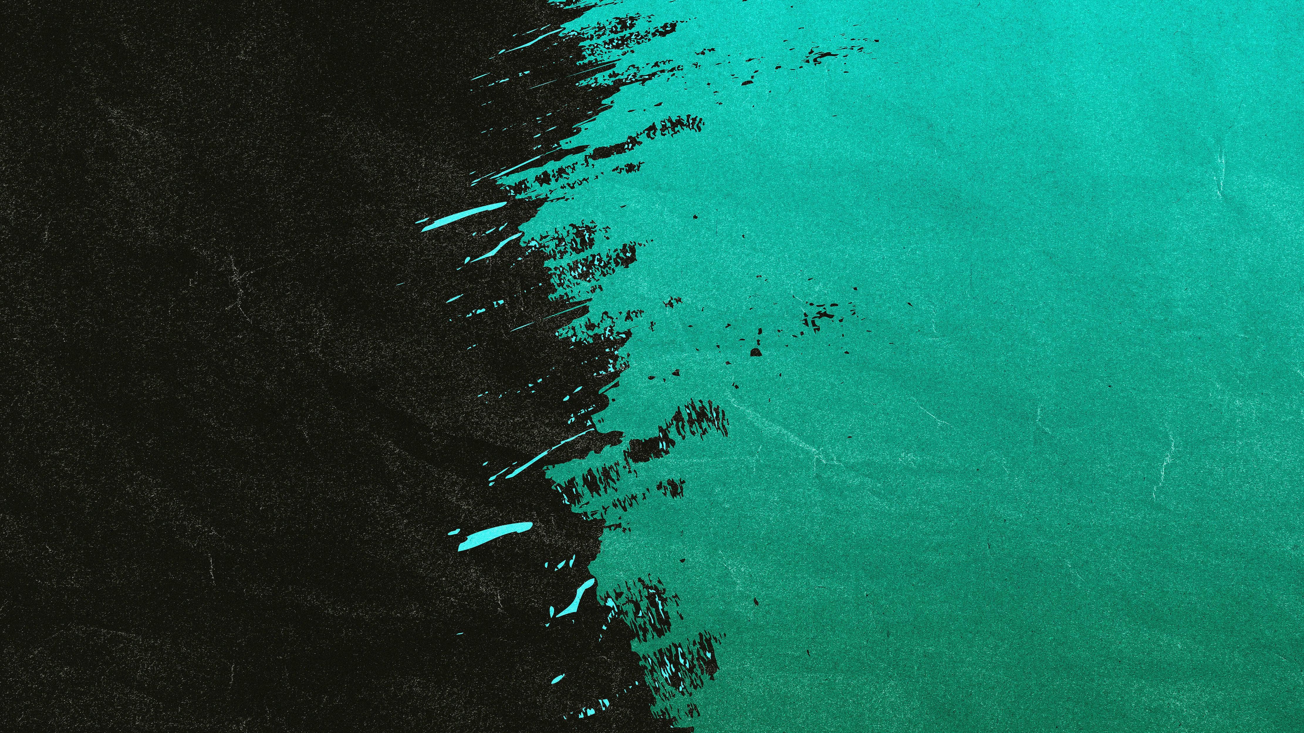 • Pincelada artística de pintura verde esmeralda sobre fondo negro.