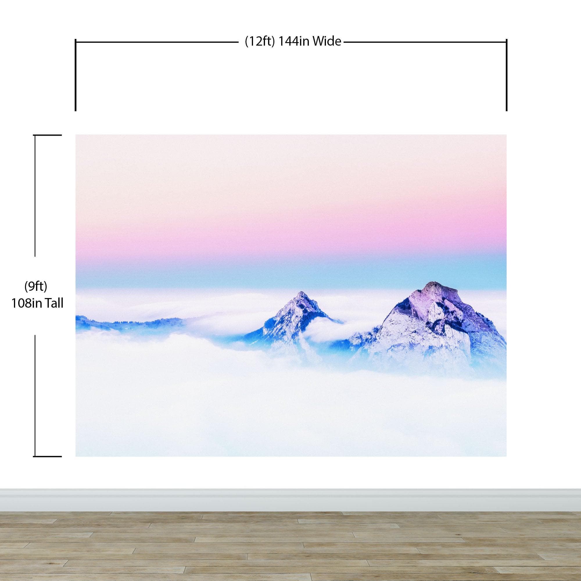 Mural de pared con vista a la montaña en colores pastel sobre las nubes. Papel tapiz autoadhesivo o mural de pared extraíble. N.º 6402