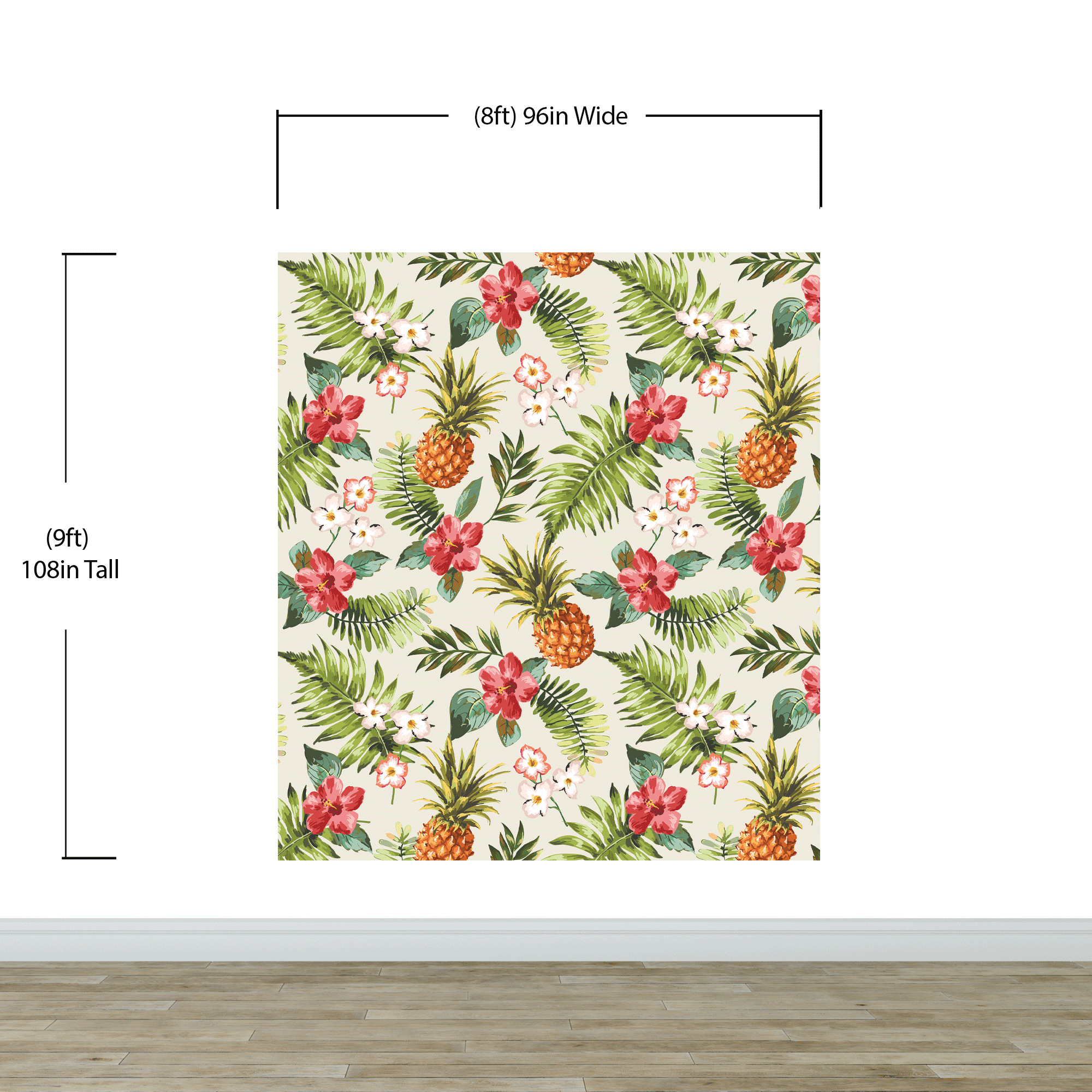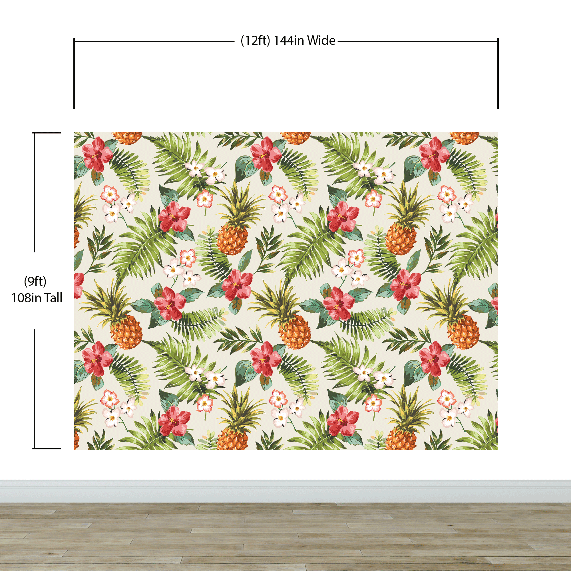 Mural de pared con ambiente tropical de piña. Papel tapiz autoadhesivo con temática hawaiana. Decoración con temática de ambiente paradisíaco. N.º 6447