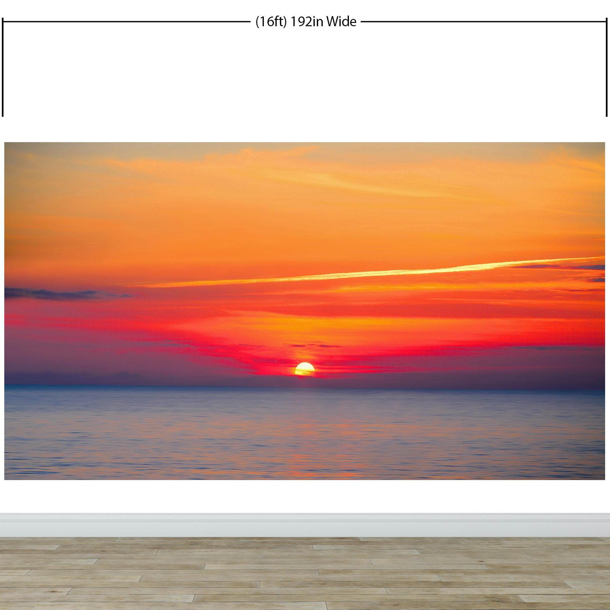 Adhesivo para pared con puesta de sol sobre la playa y cielo rojo n.° 6005