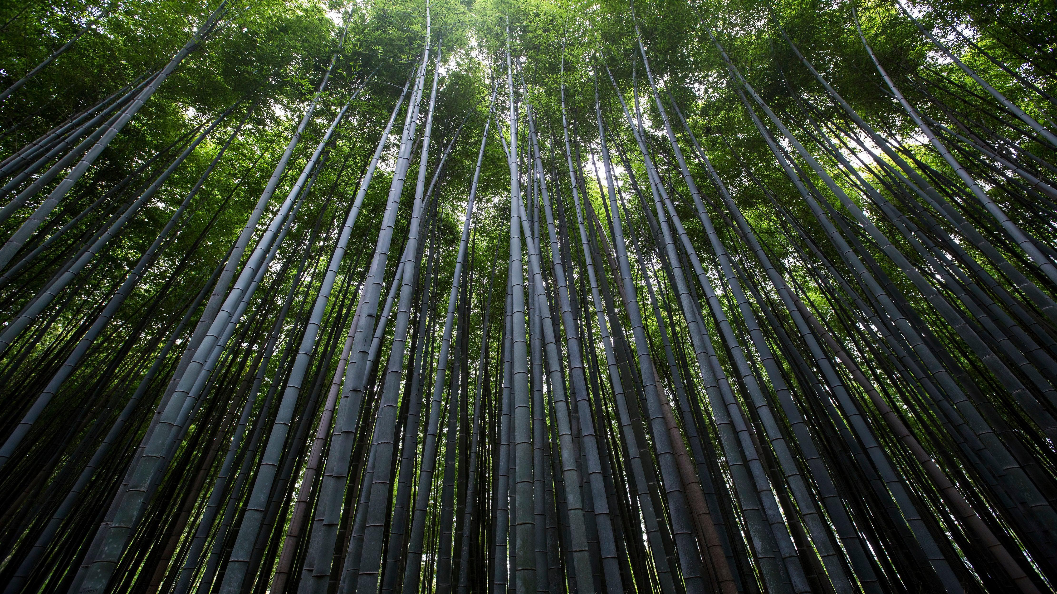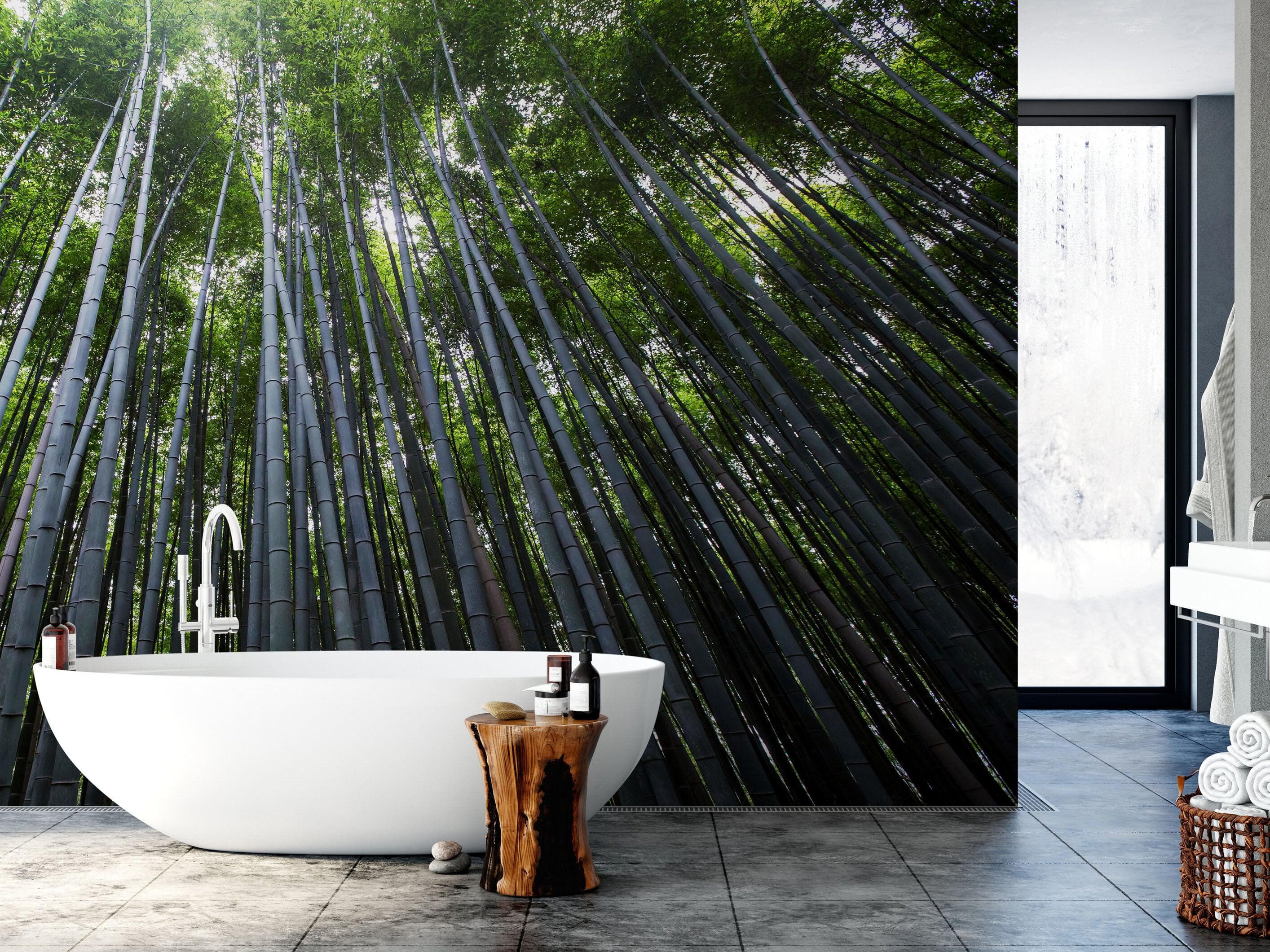 Mural de pared con un bosque de bambúes altos. Fondo de pantalla de paz, serenidad y zen. #6463