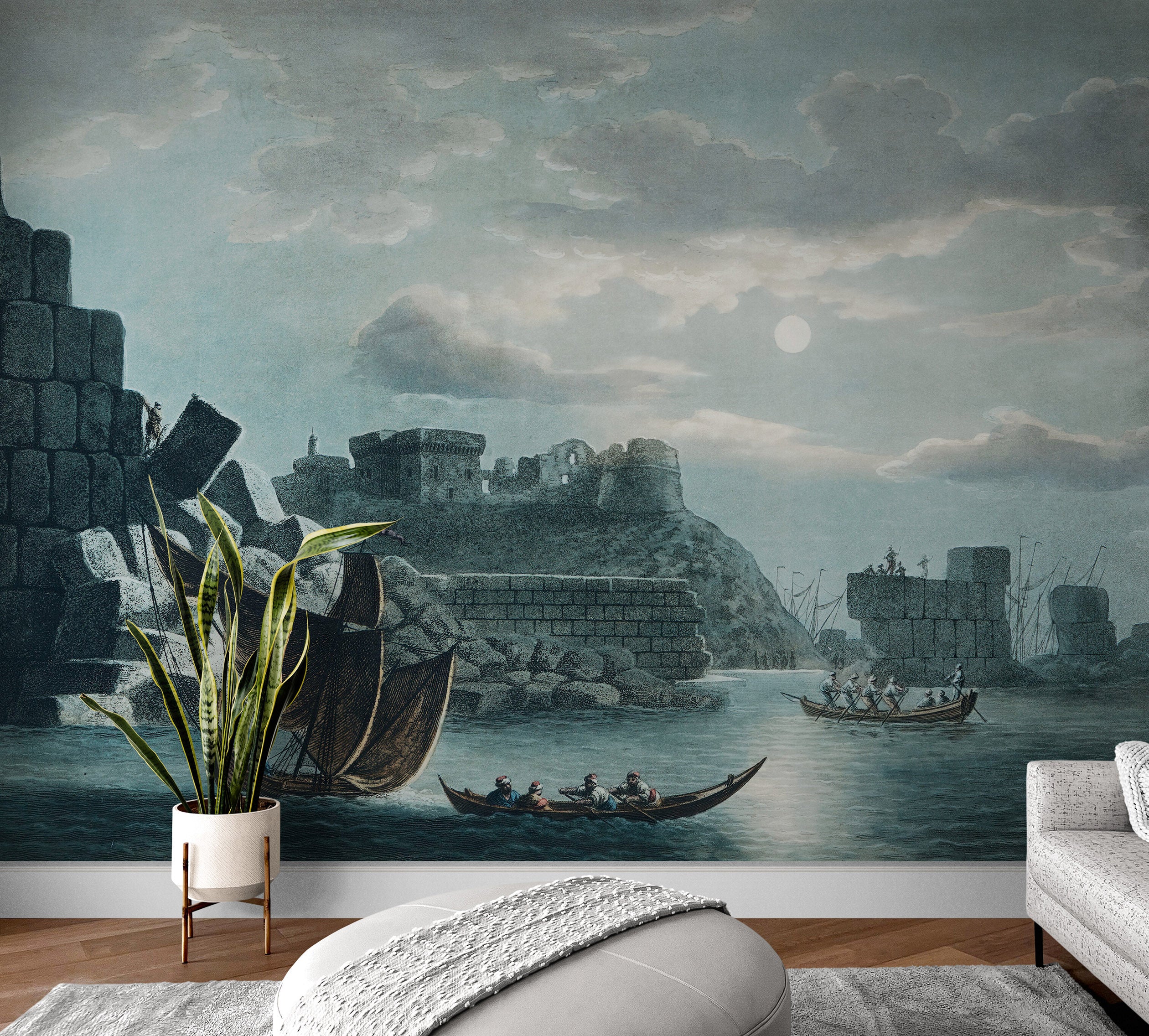 Mural de pared con ilustraciones de la isla de Tortosa desde las vistas de los dominios otomanos. Navegando por las islas del Mediterráneo. #6457