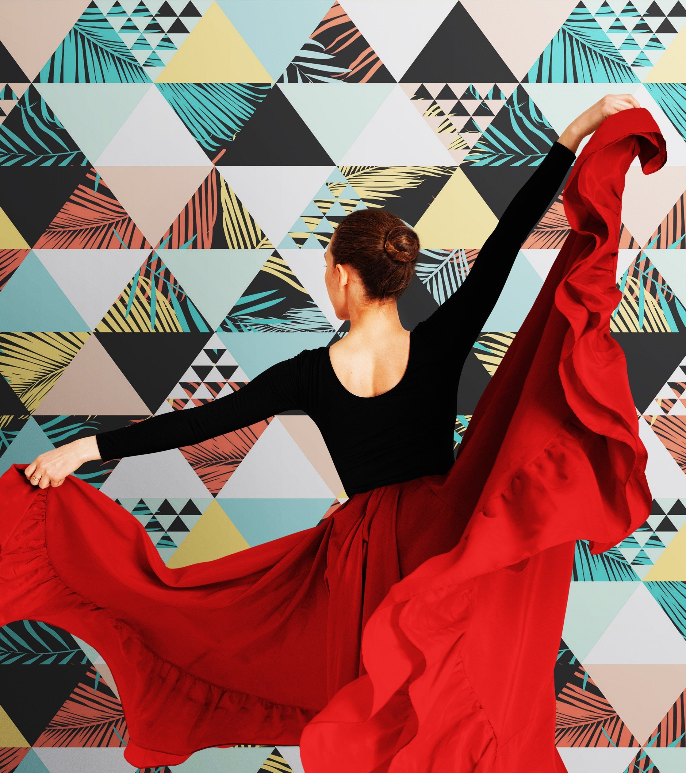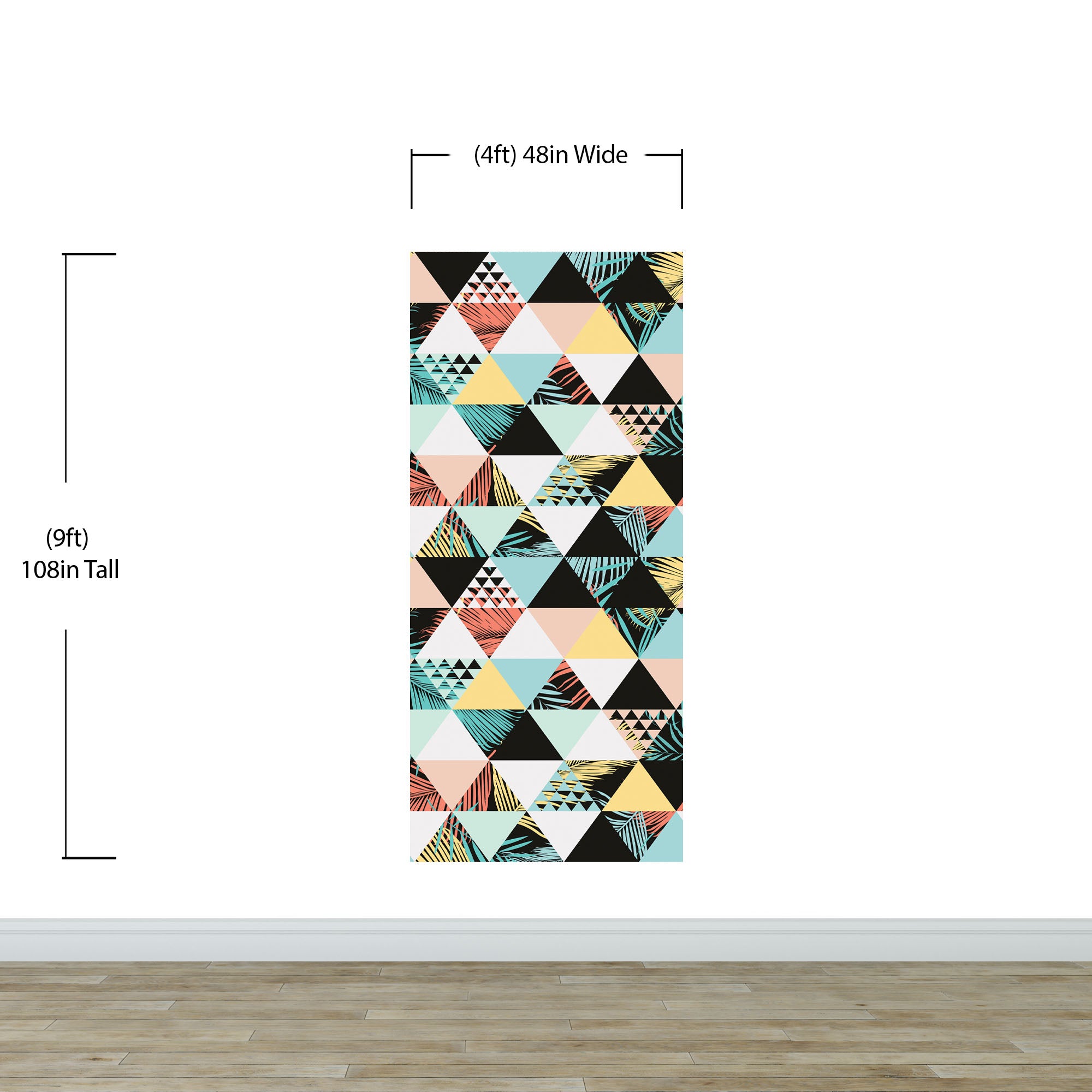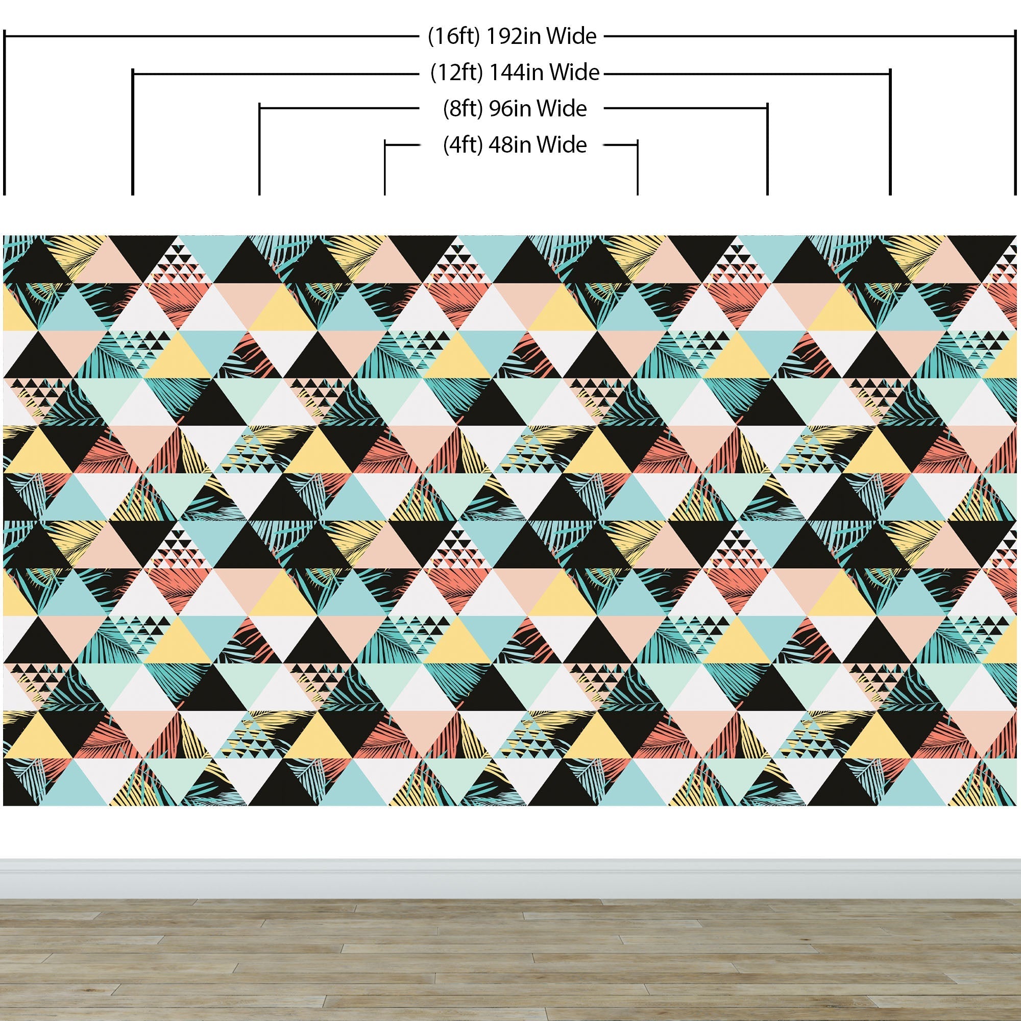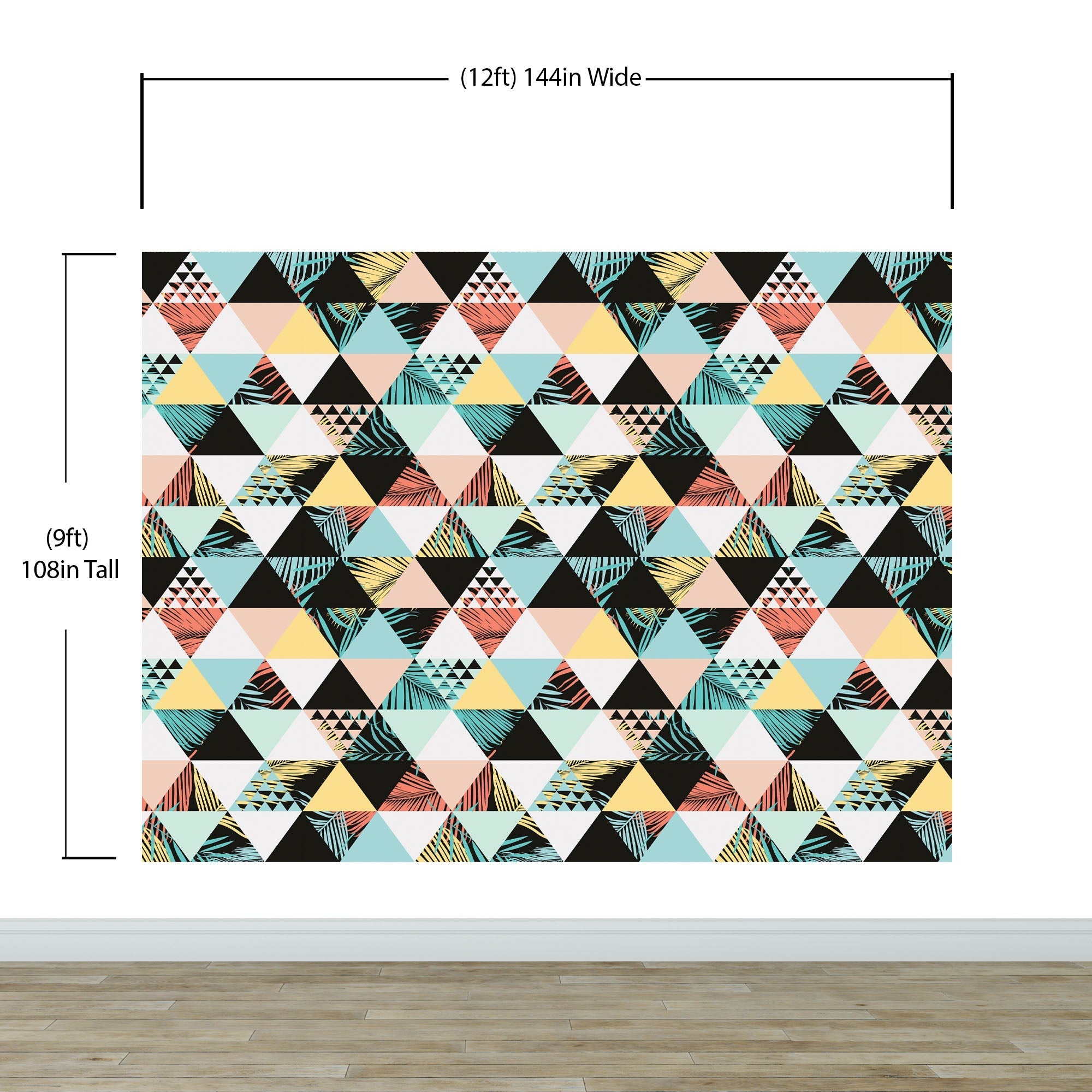 Mural de pared con diseño geométrico abstracto de hojas de palmera y triángulos. #6431