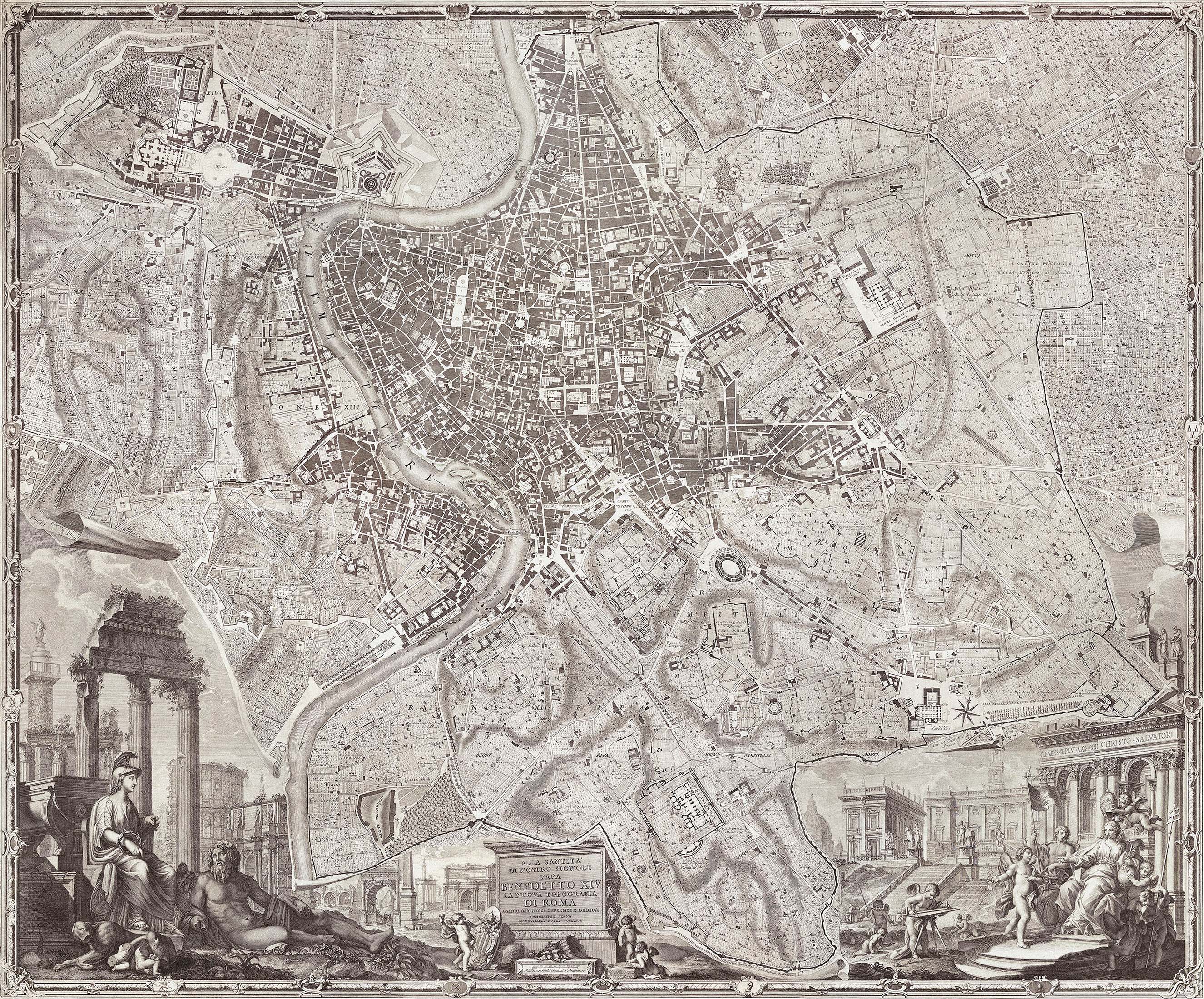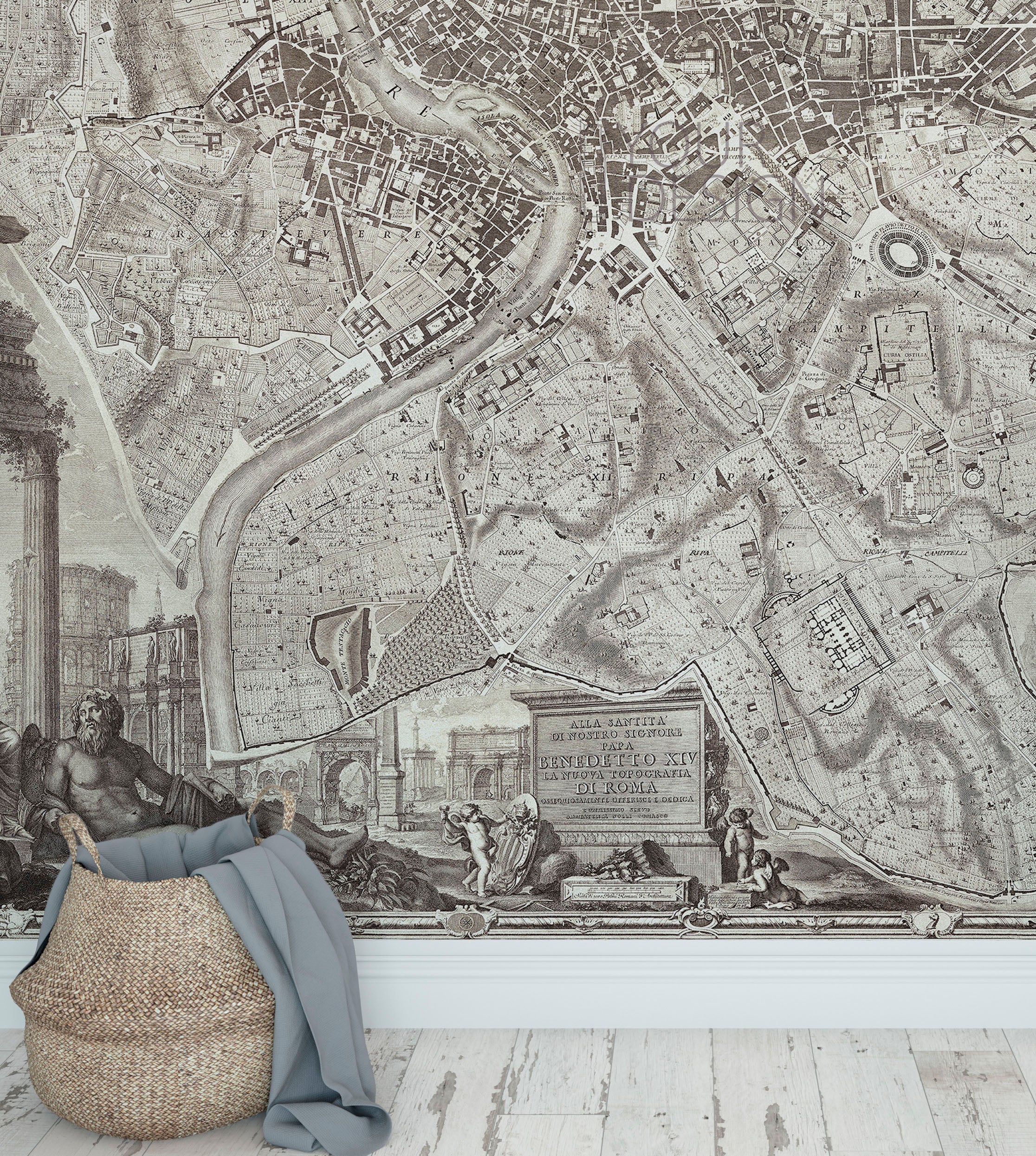 Mural de pared con el mapa antiguo de Roma, Italia. Papel pintado autoadhesivo con el plano de Roma de gran tamaño. #6412