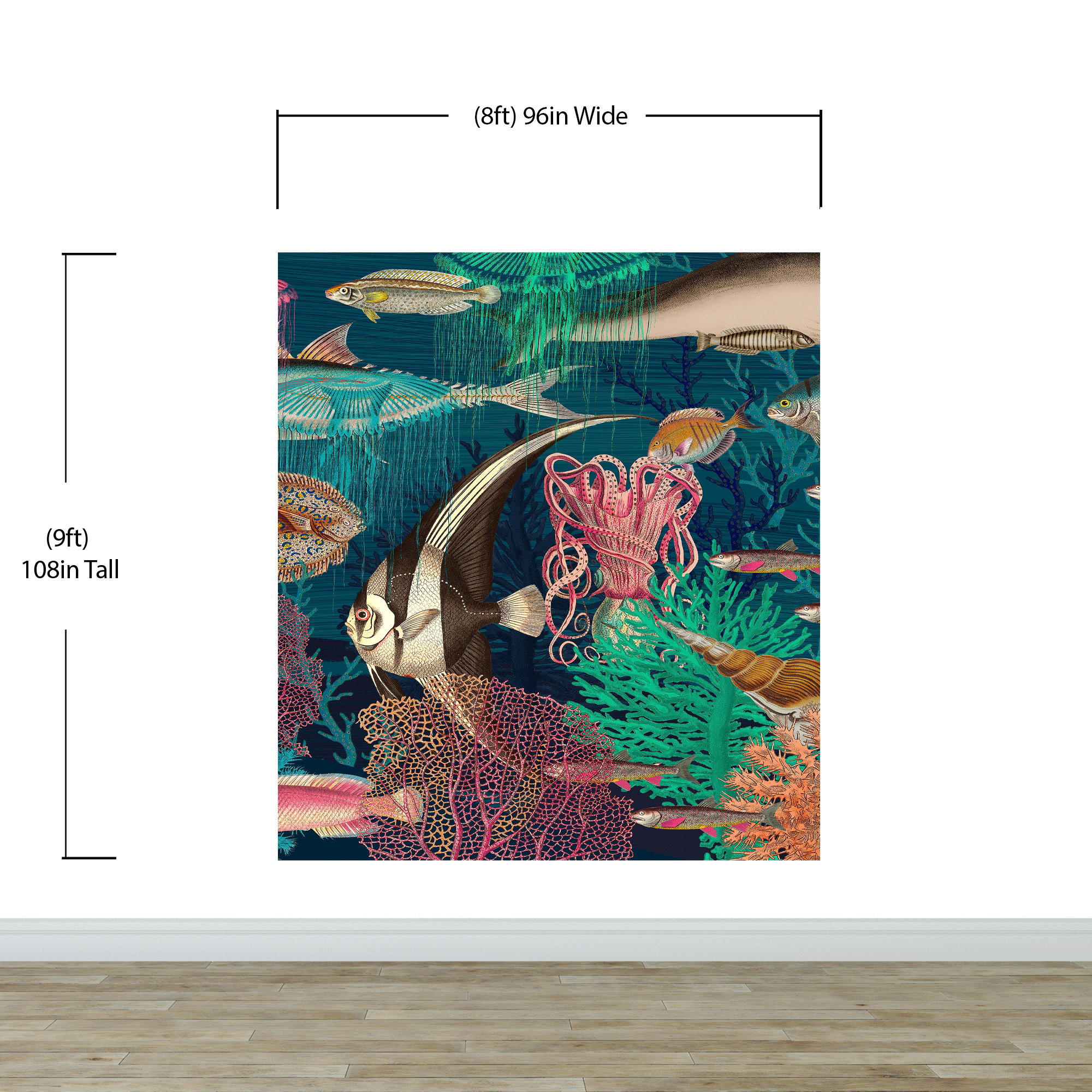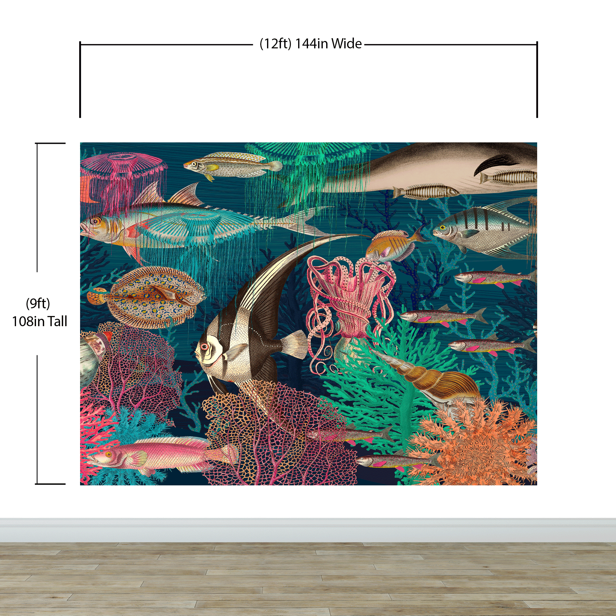Mural de pared vintage retro con temática marina submarina. Papel tapiz autoadhesivo con temática de playa, náutica y vida marina. N.º 6442