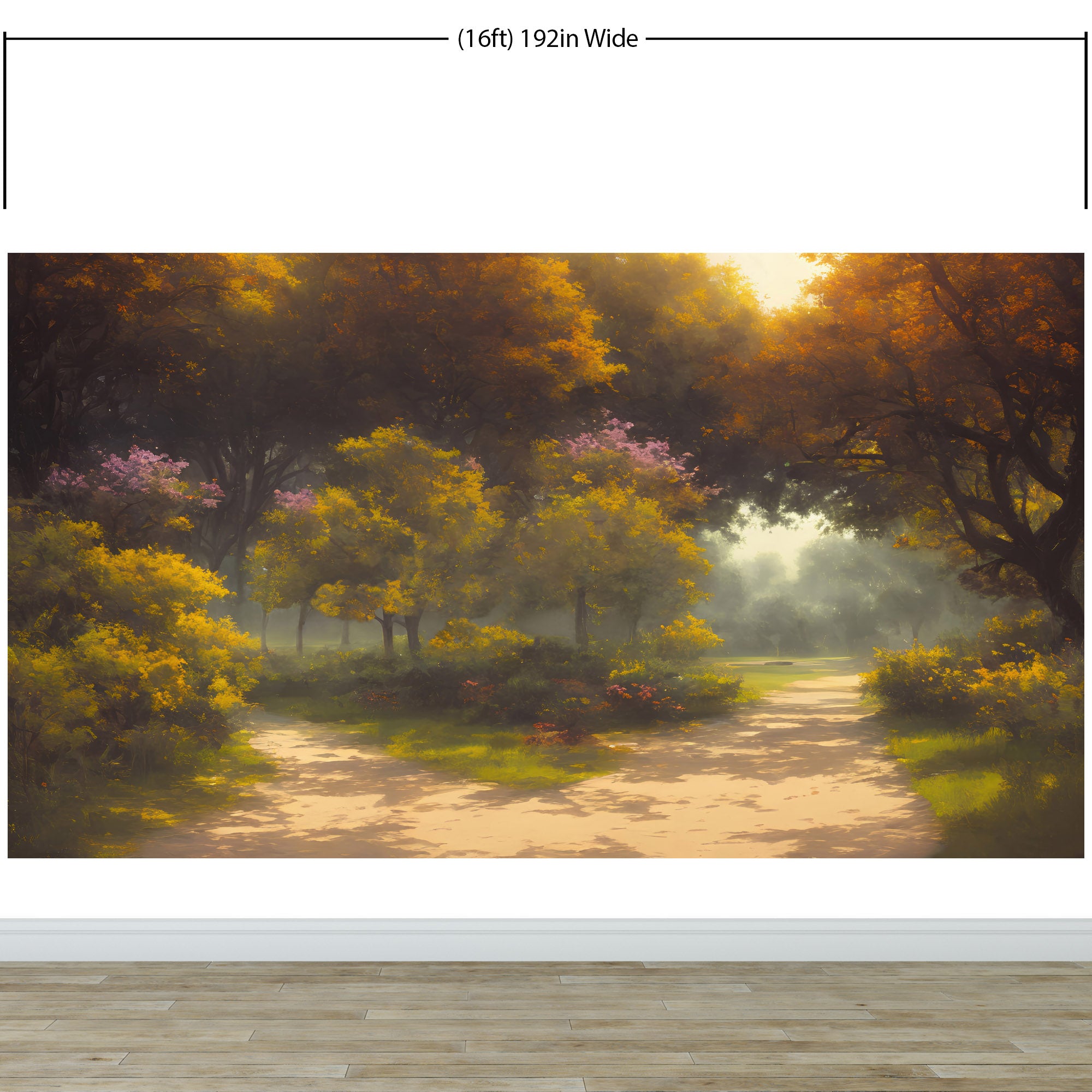 Papel tapiz vintage con árboles en un parque. Mural de pared autoadhesivo. N.º 6496