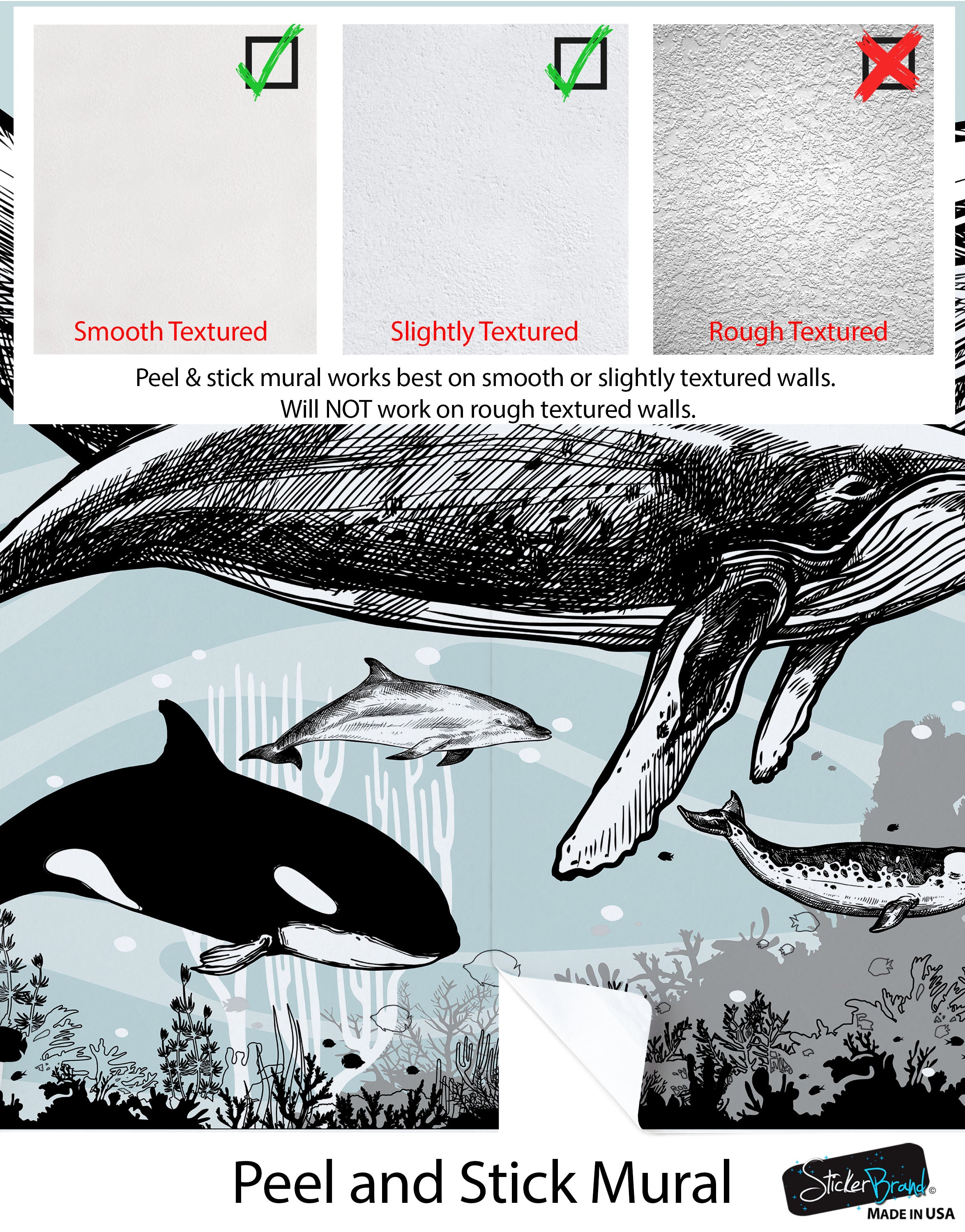 • Los murales de pared StickerBrand son extraíbles y reposicionables.
