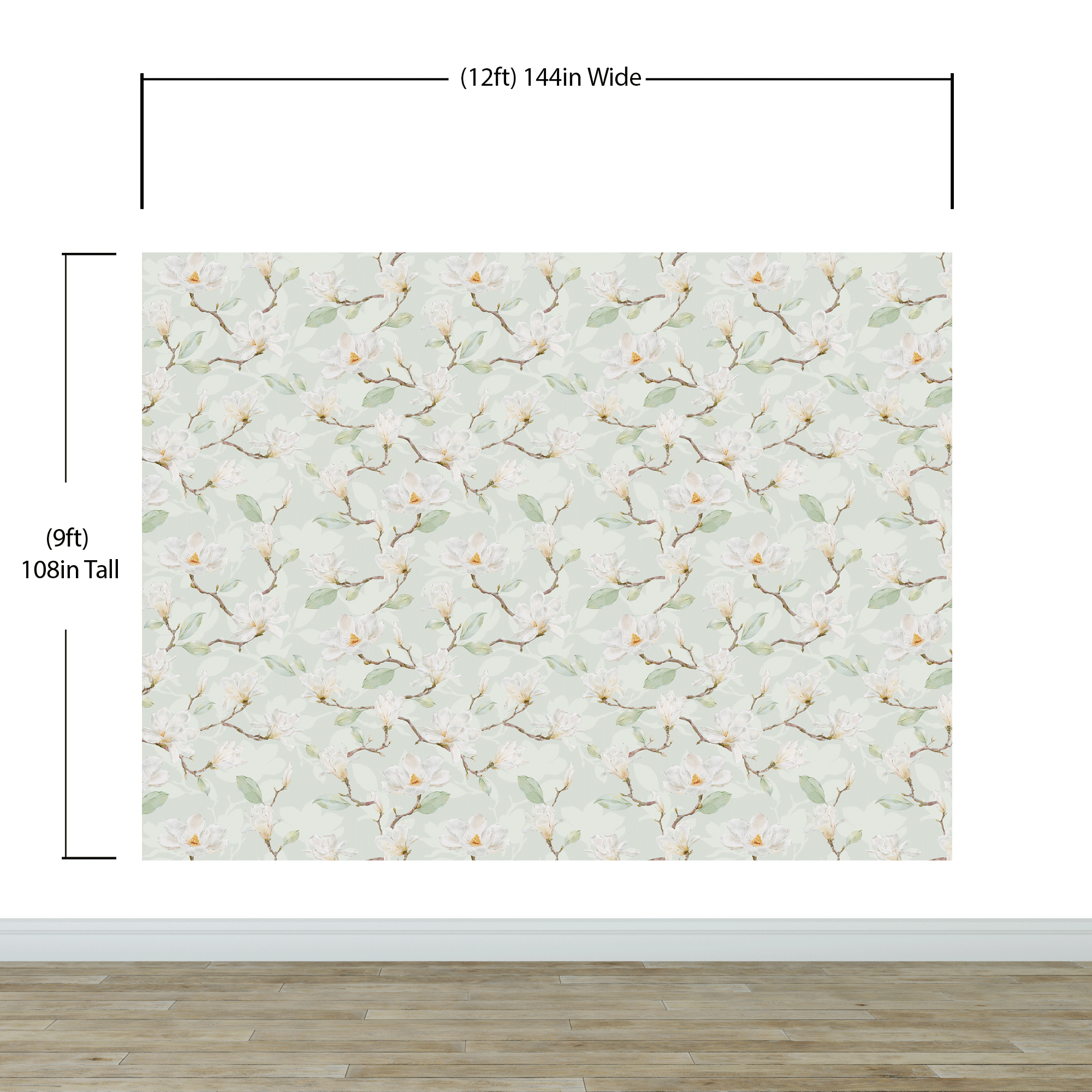 Mural de pared con diseño de magnolia blanca, papel pintado autoadhesivo. N.º 6477