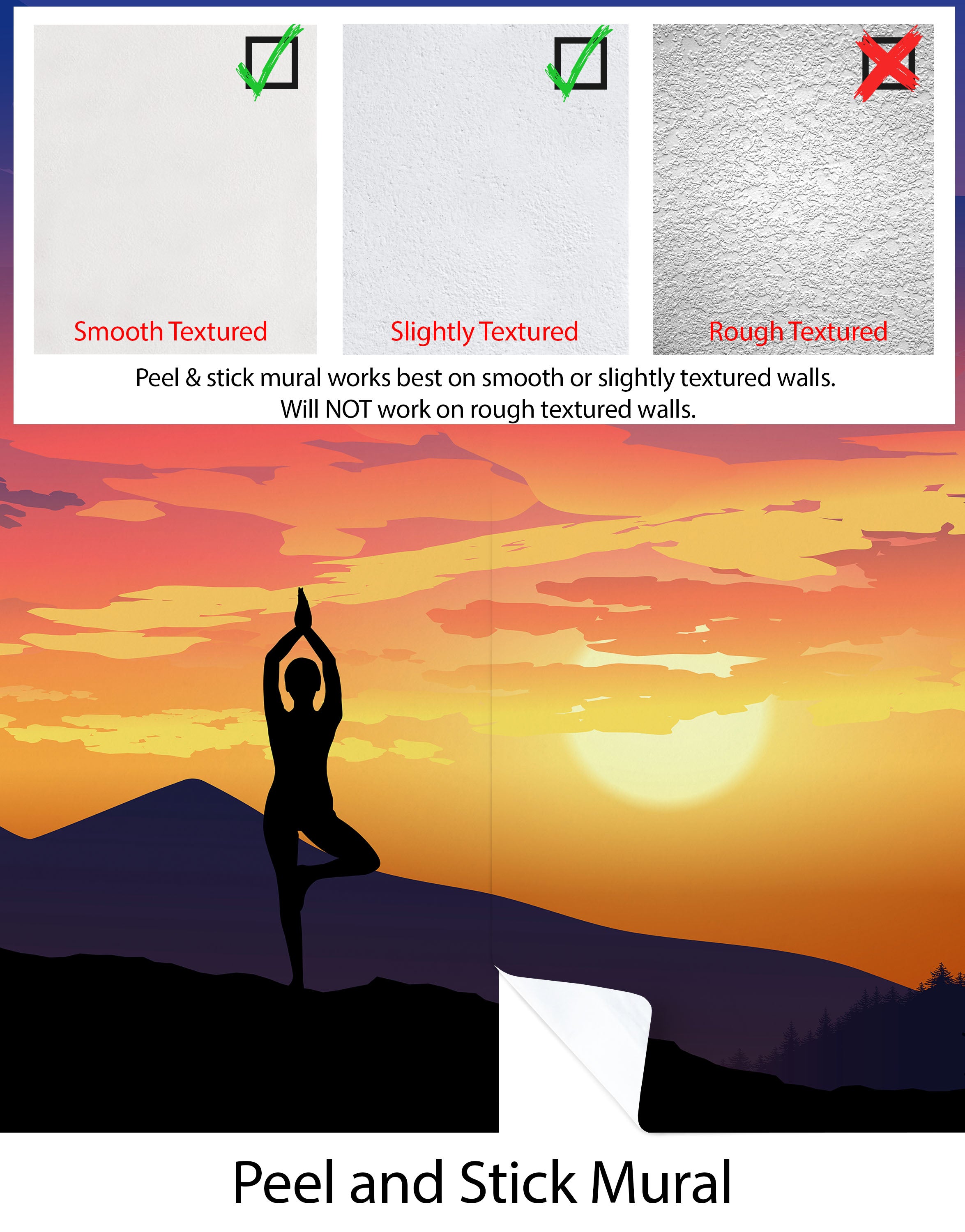 Mural de pared con vista a la montaña y meditación de yoga. Papel tapiz autoadhesivo con diseño de amanecer tranquilo. N.º 6364