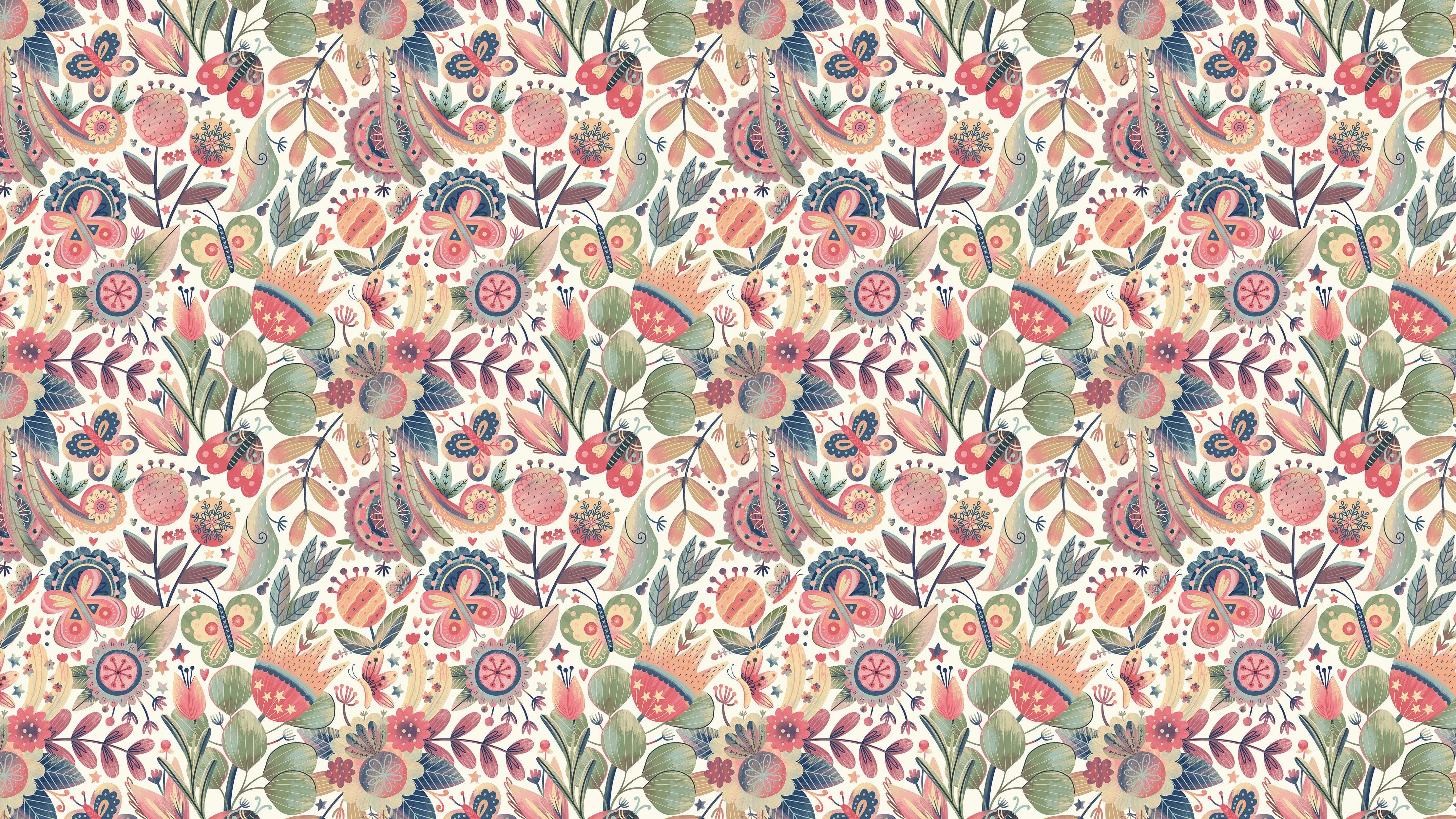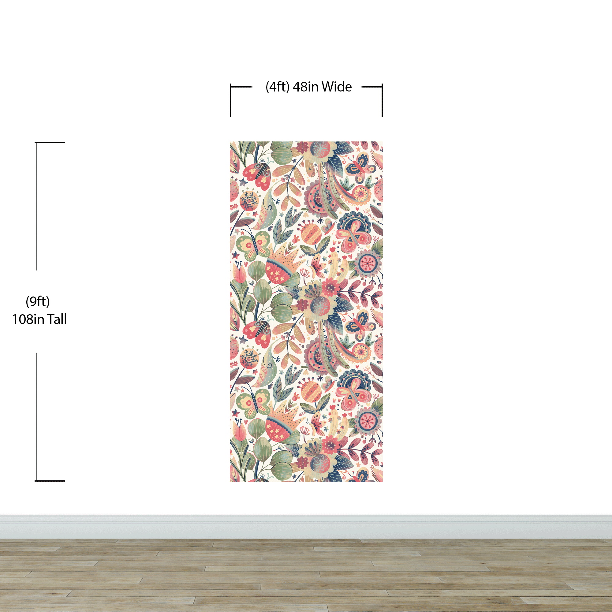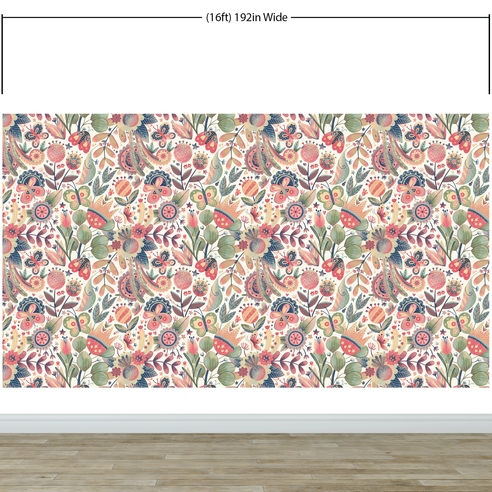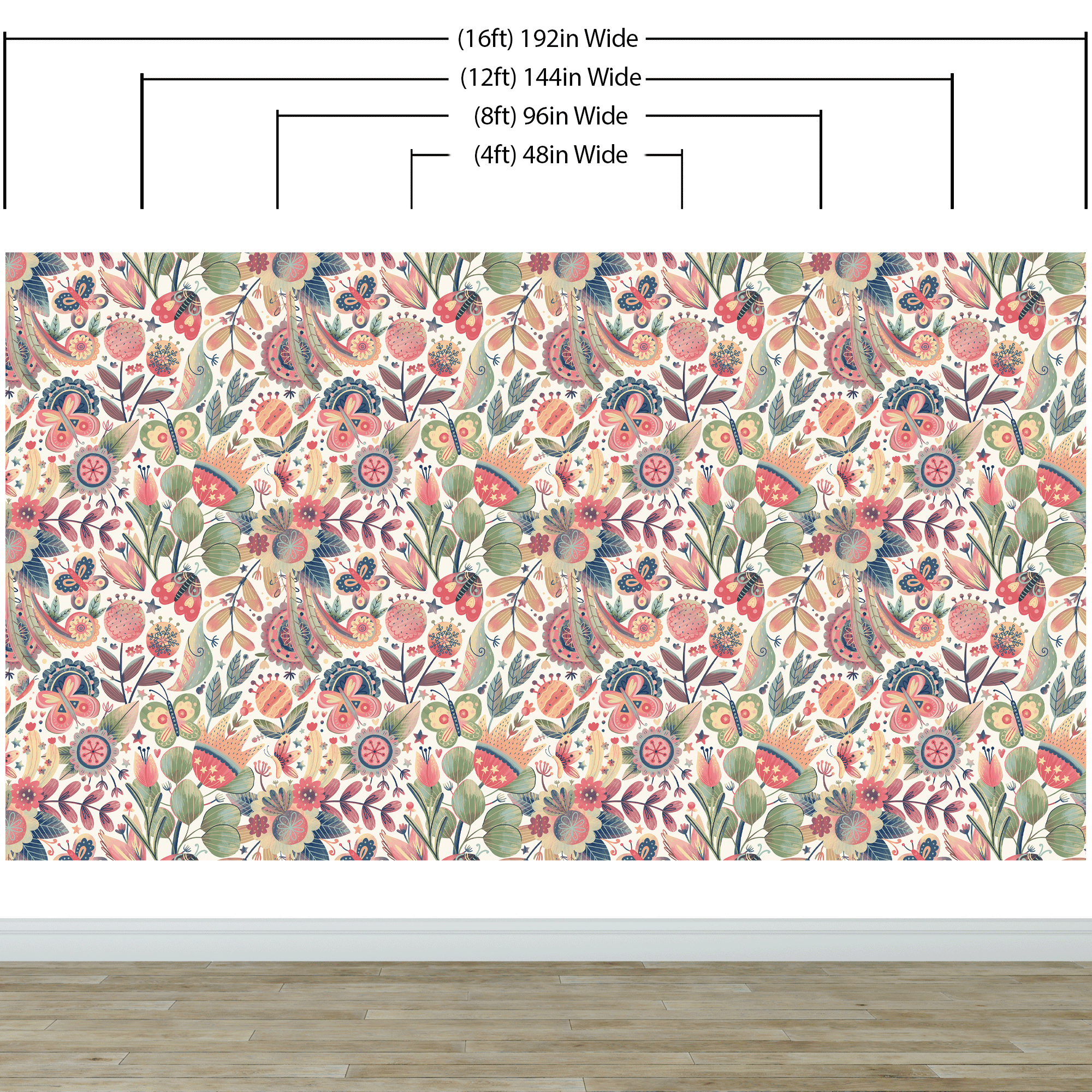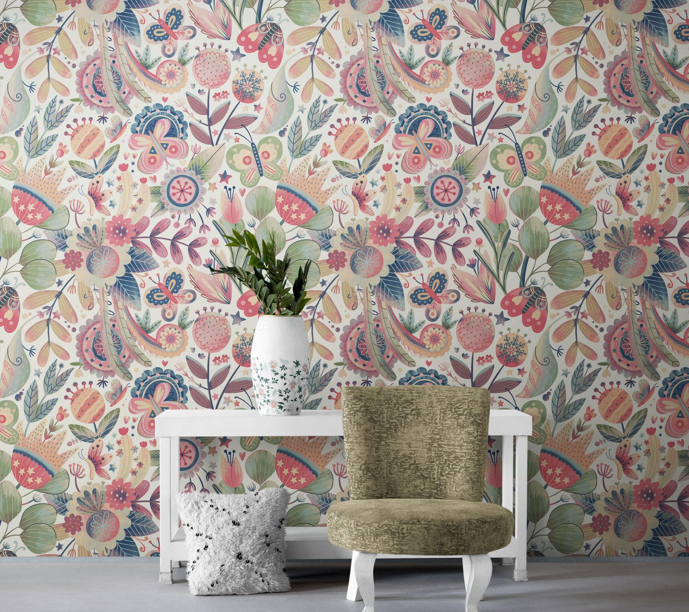 Flower Garden Illustration Wall Mural. Pastel Color Pattern Nursery, Bedroom, Kid’s Room Wall Decor. Peel and Stick Wallpaper. #6448