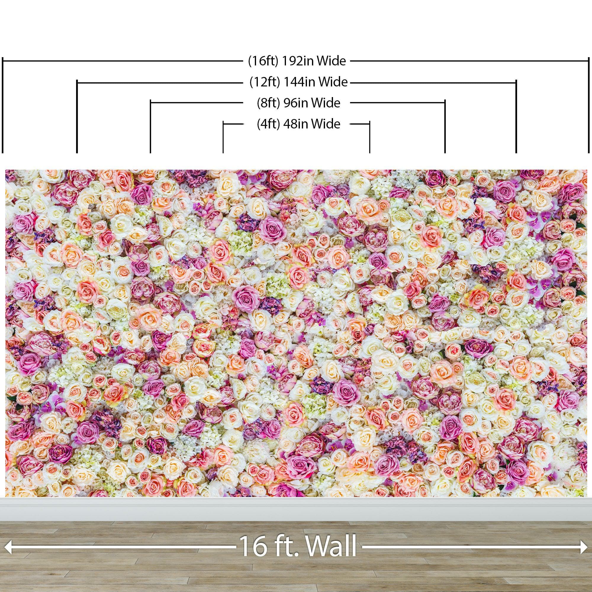 Peonies Flower Pattern Peel and Stick Wall Mural. Wedding Background. #6277