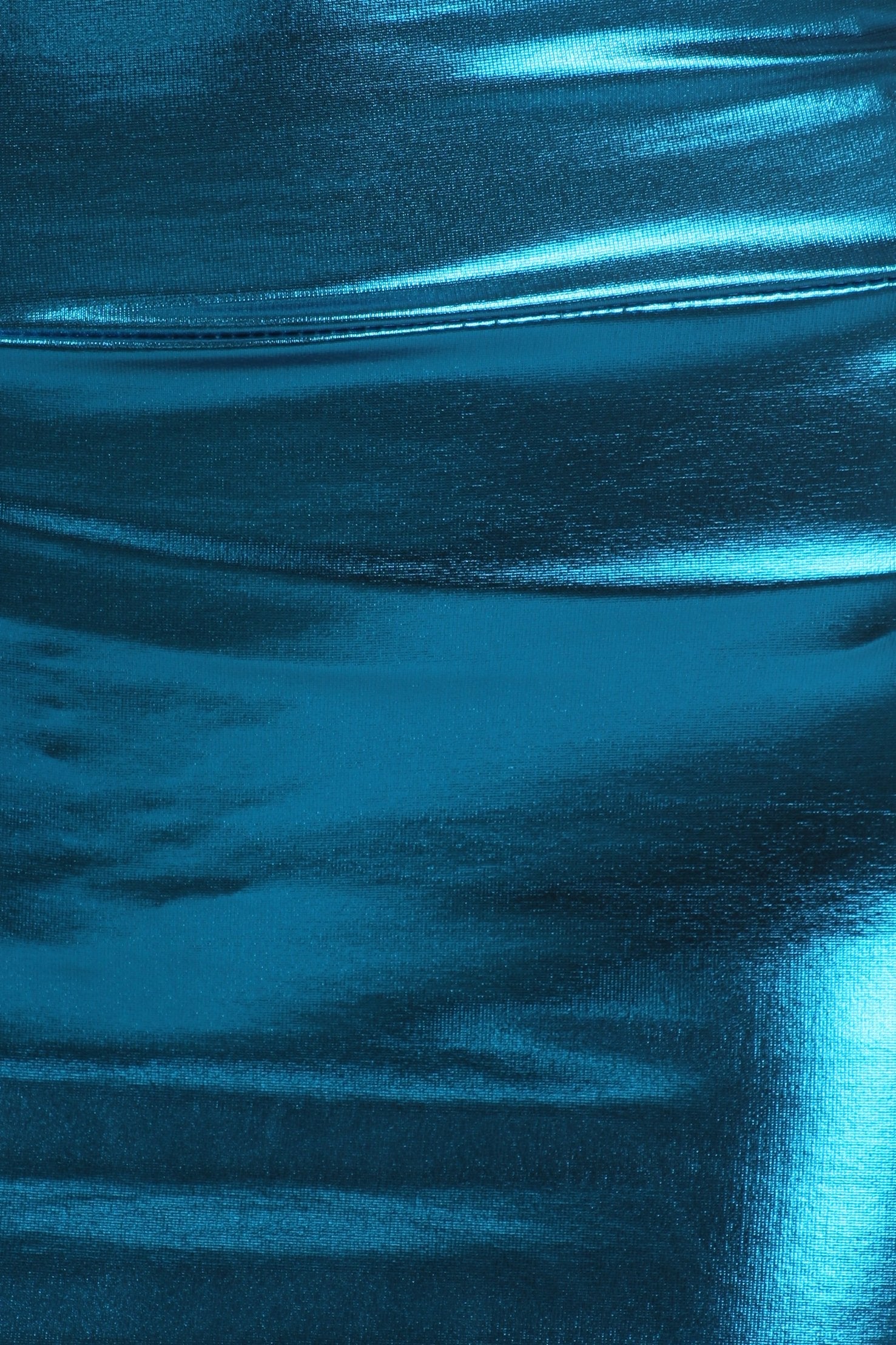 Women's metallic liquid mini skirt features jersey lined comfortable waistband, laser-cut hem and shiny metallic stretch fabric.