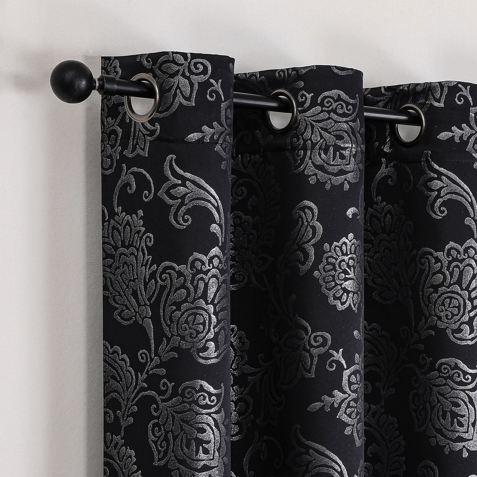 Silas Damask Metallic Grommet Room Darkening Window Panel, 52x84 Inches