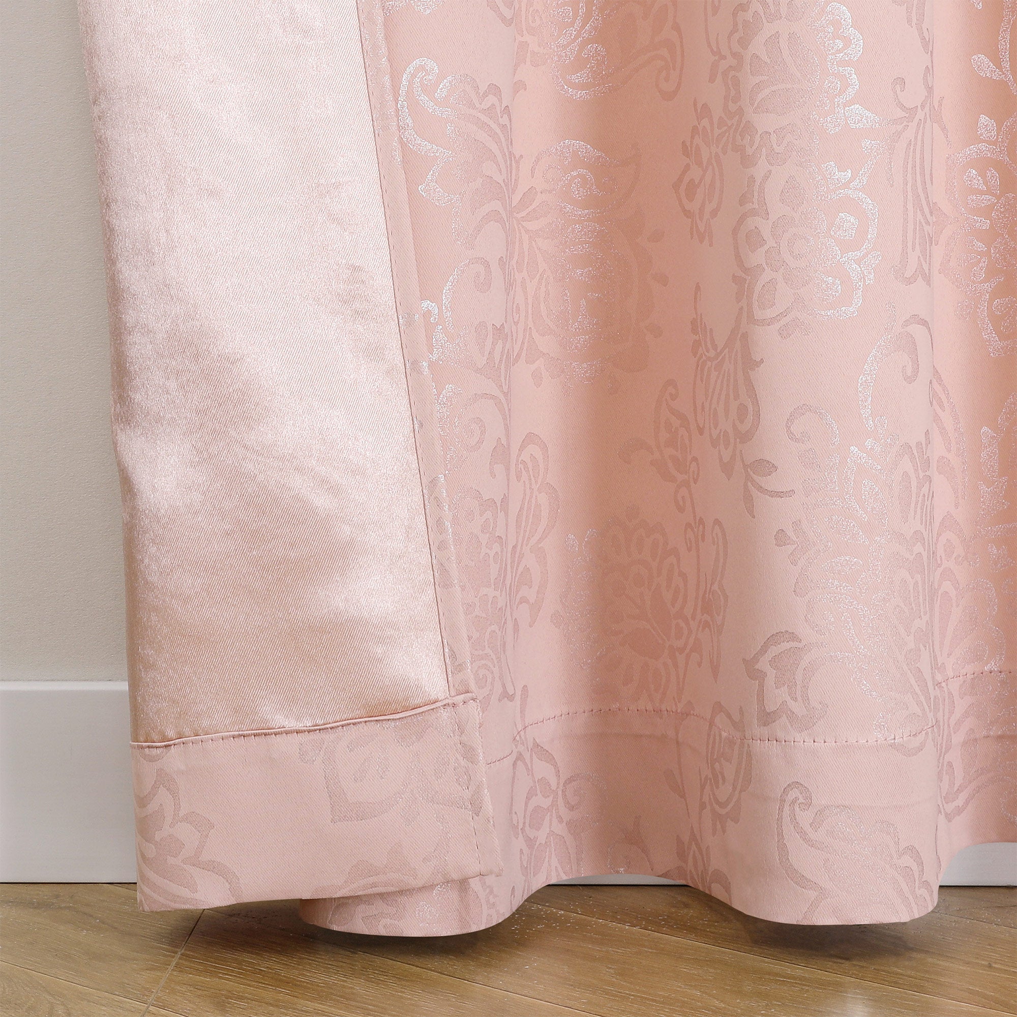 Indulge in luxury and tranquility with the Silas Damask Metallic Grommet Room Darkening Window Panel. This stunning curtain boasts a timeless damask pattern elevated by a subtle metallic sheen, adding a touch of glamour to your space. Designed to block out unwanted sunlight and noise, the room-darkening fabric creates a serene atmosphere, perfect for relaxation or restful sleep. The modern grommet top ensures effortless hanging and smooth sliding.
