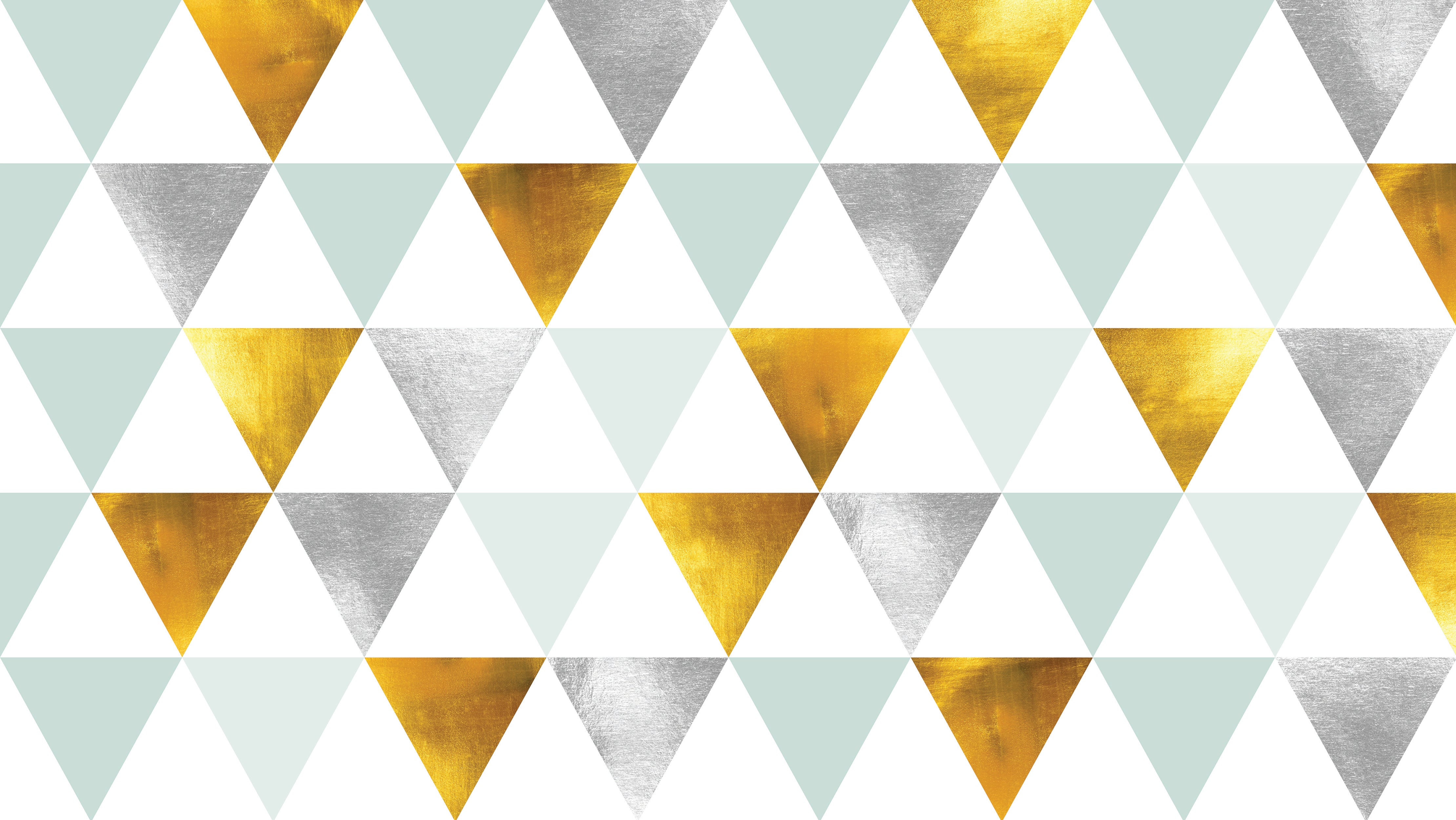 Triangle Geometric Abstract Pattern Wall Mural. Gold, Silver, Teal, Turquoise and White Color Pattern. #6306